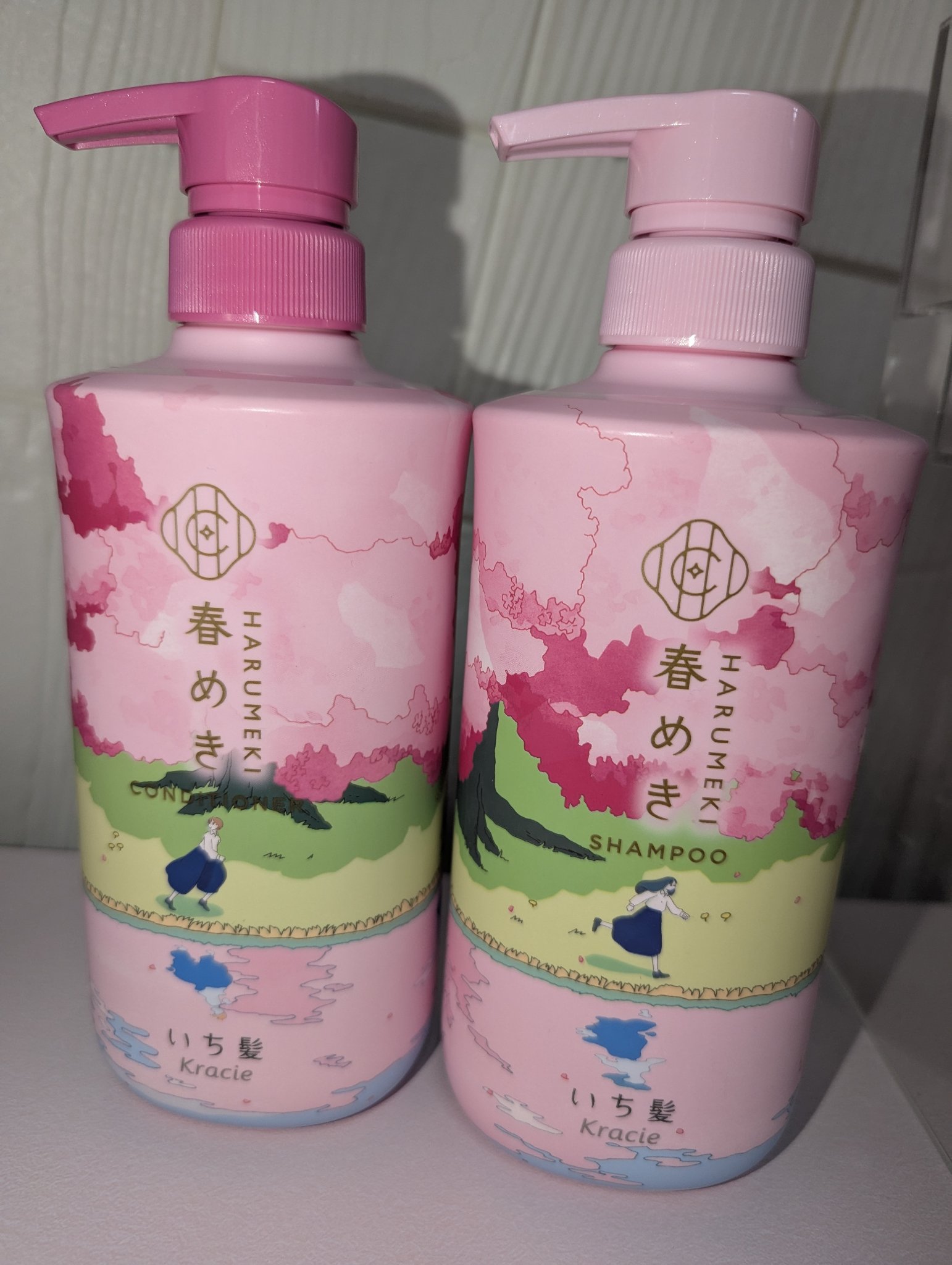 ドンキで見つけた春の新作🌸 パケが春の桜を連想させてくれていち早く春を楽しめました😊 香りはフルーティな香りで甘すぎず春らしい香りです🌸 旦那も気に入って使ってます(笑) 価格もシャンプーとコンディショナーのセットで600円台とめっちゃコスパ良くてついついこのいち髪シリーズ最近はハマって買っちゃってます😮💨💖
