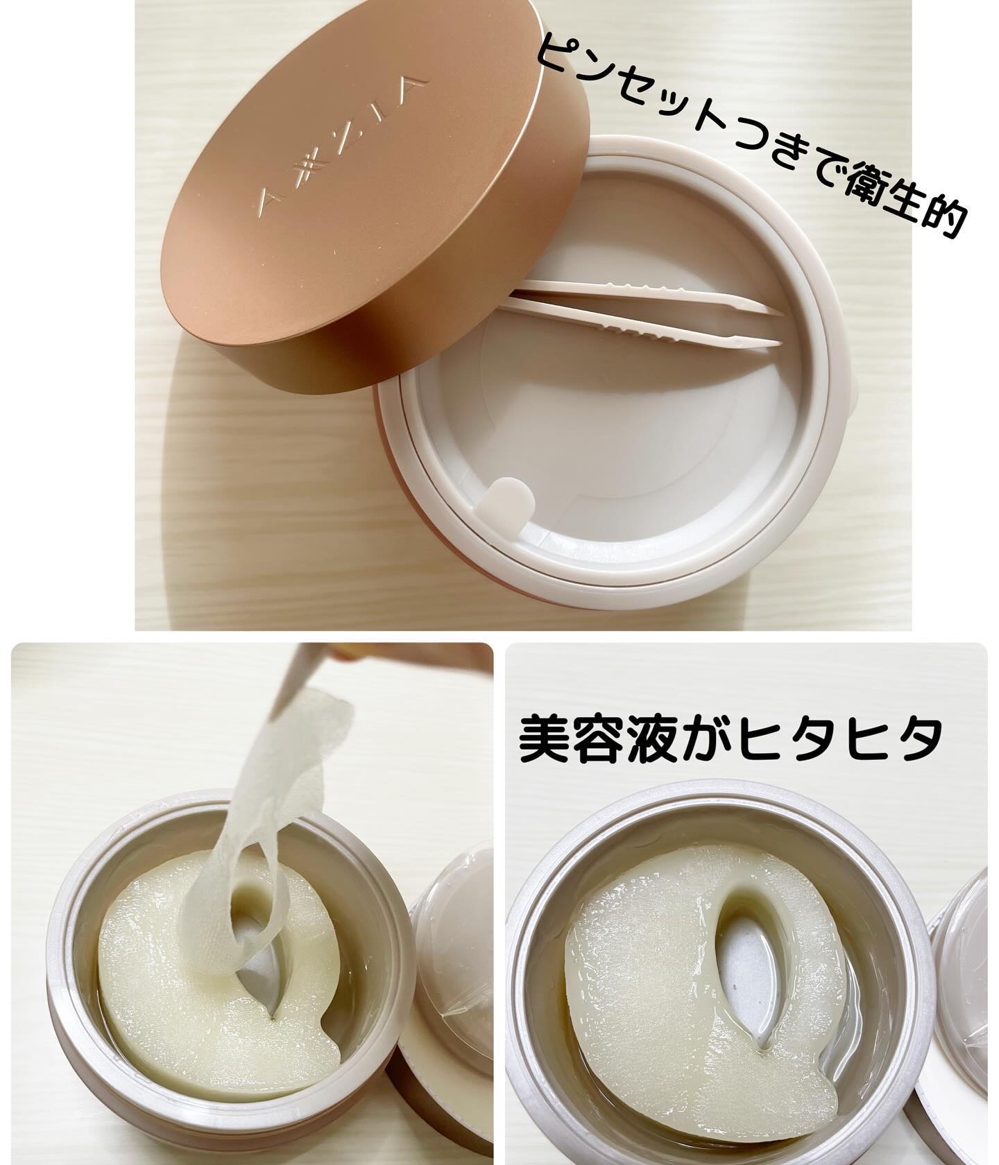 目元ケア研究10年以上のアクシージアの人気商品。アクシージア独自の360°シート。目周りを囲む眼輪筋に着目されたた形状のシートで、まぶた全体のしっとりケアが叶うそう。 独自成分トリプルミネラルコンプレックス、ビタミンKコンプレックスに加え、植物サポート成分、ビタミンC誘導体、Wヒアルロン酸、ペプチドが配合されていて、うるぷるの目元を目指せるそう。 肌あたり柔らかな0.3mmの極薄シートがぴたっと密着してくれるのでながらしながら、目元ケアできて使い続けやすい。