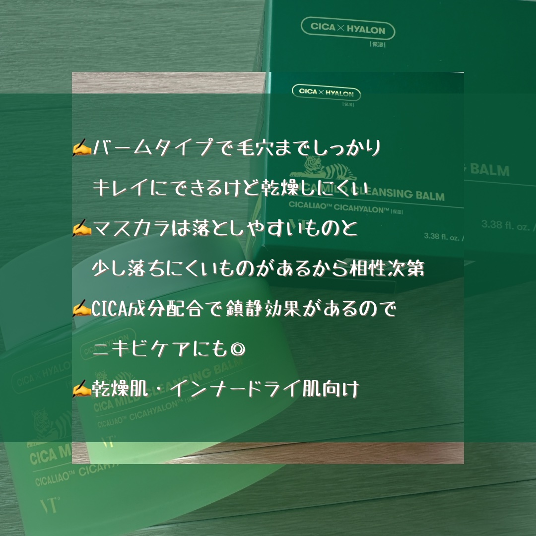 - 良いスキンケアをしっかり角質層の隅々まで浸透 させるためお肌の汚れをしっかり落としてくれる シカ マイルド クレンジングバーム