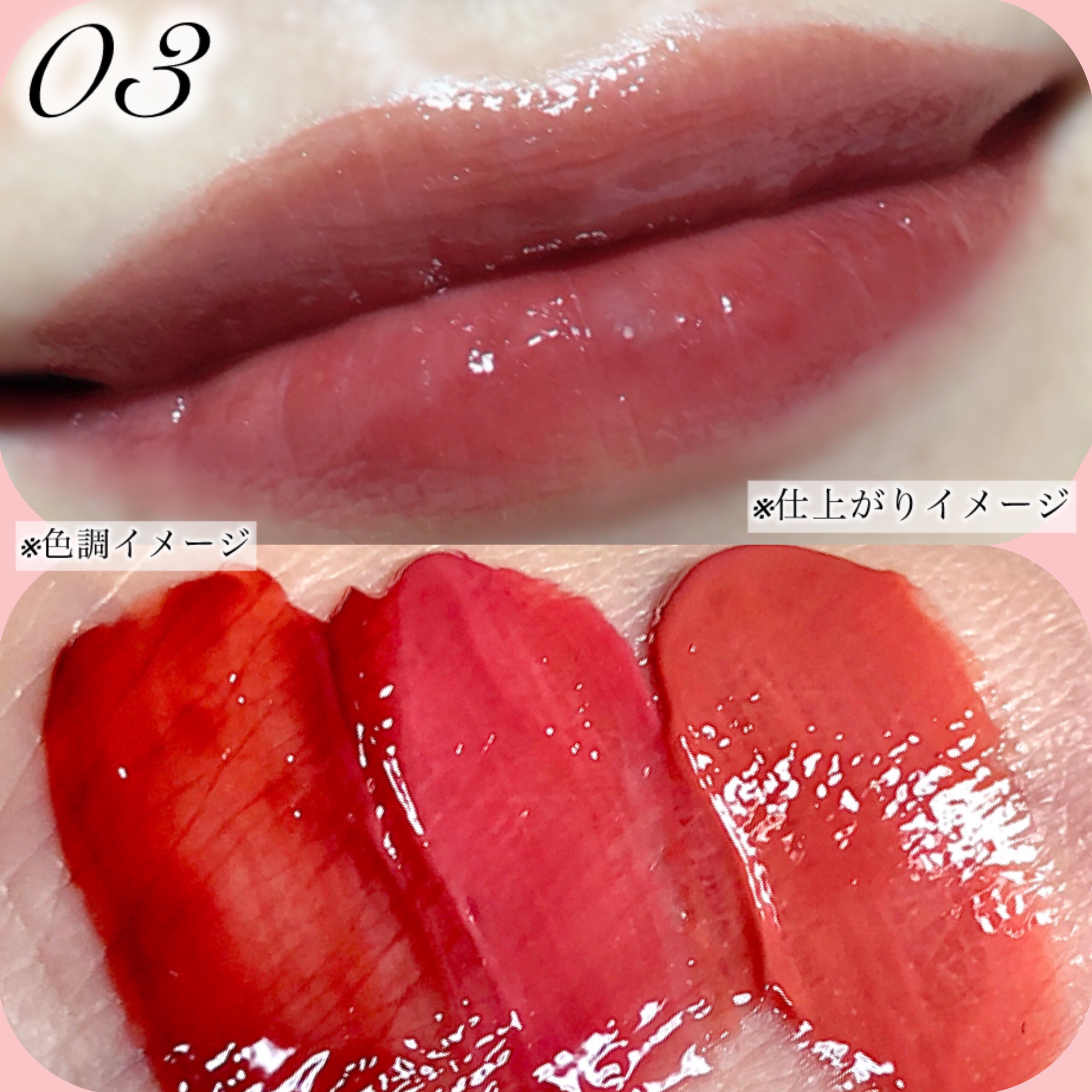 じゅわっとツヤ溢れるぷっくりティント♡✨ ettusaisのホリデーコスメ タイムスリップ3色をスウォッチ🥰 新作リップはどれもベージュを混ぜた肌なじみの良い、可愛い粘膜カラー😍 オイルインウォーター処方だからするする塗れて、ちゅるんとした仕上がりに♡ 私はピンクベージュな02番がお気に入り🌸 無香料だよ🫶