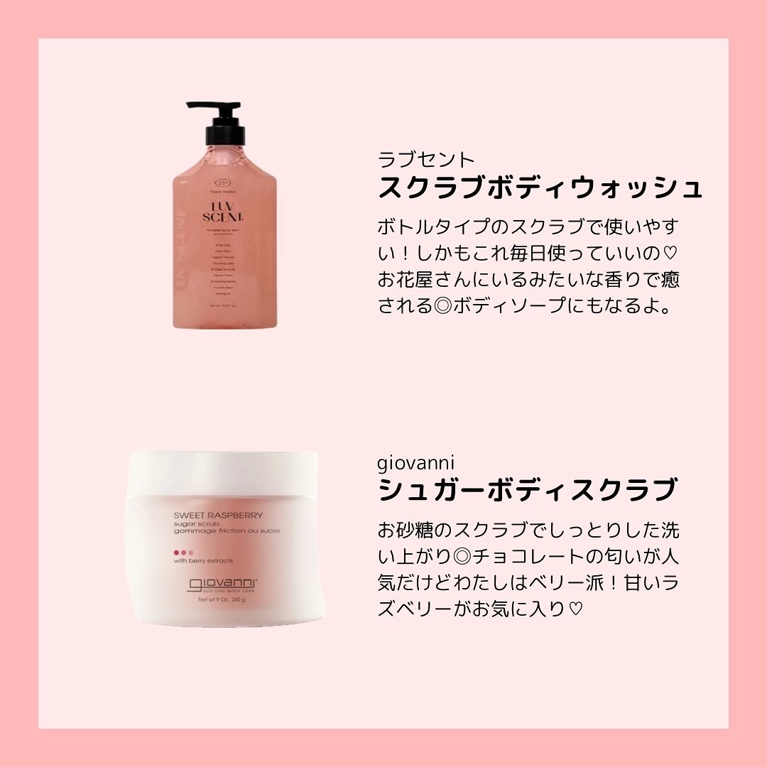 週に1.2回のスペシャルケアはもちろん、毎日使えたり泡立ててボディソープとして使えるものまで、最近は色々あるの😳😳 じつはスクラブの成分も塩や砂糖、温泉成分とか使い心地も全然違うし使い比べてみるとおもしろかった~! ぜひ参考にしてみてください⸜(*'ᗜ'*)⸝
