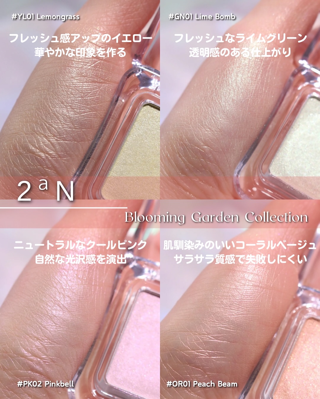 春の庭園からインスピレーションを受けた 暖かく明るいムードのブルーミングガーデンコレクション新発売 水分感のあるしっとりしたハイライターで凹凸なく肌に滑らかに密着!微細なパールの粒子含有でもともとの自分の肌のようにしっとり浮かび上がるツヤ💡 水彩画のように透明で自然に生き生きさせ 薄く繊細に密着するパウダーで一日中維持