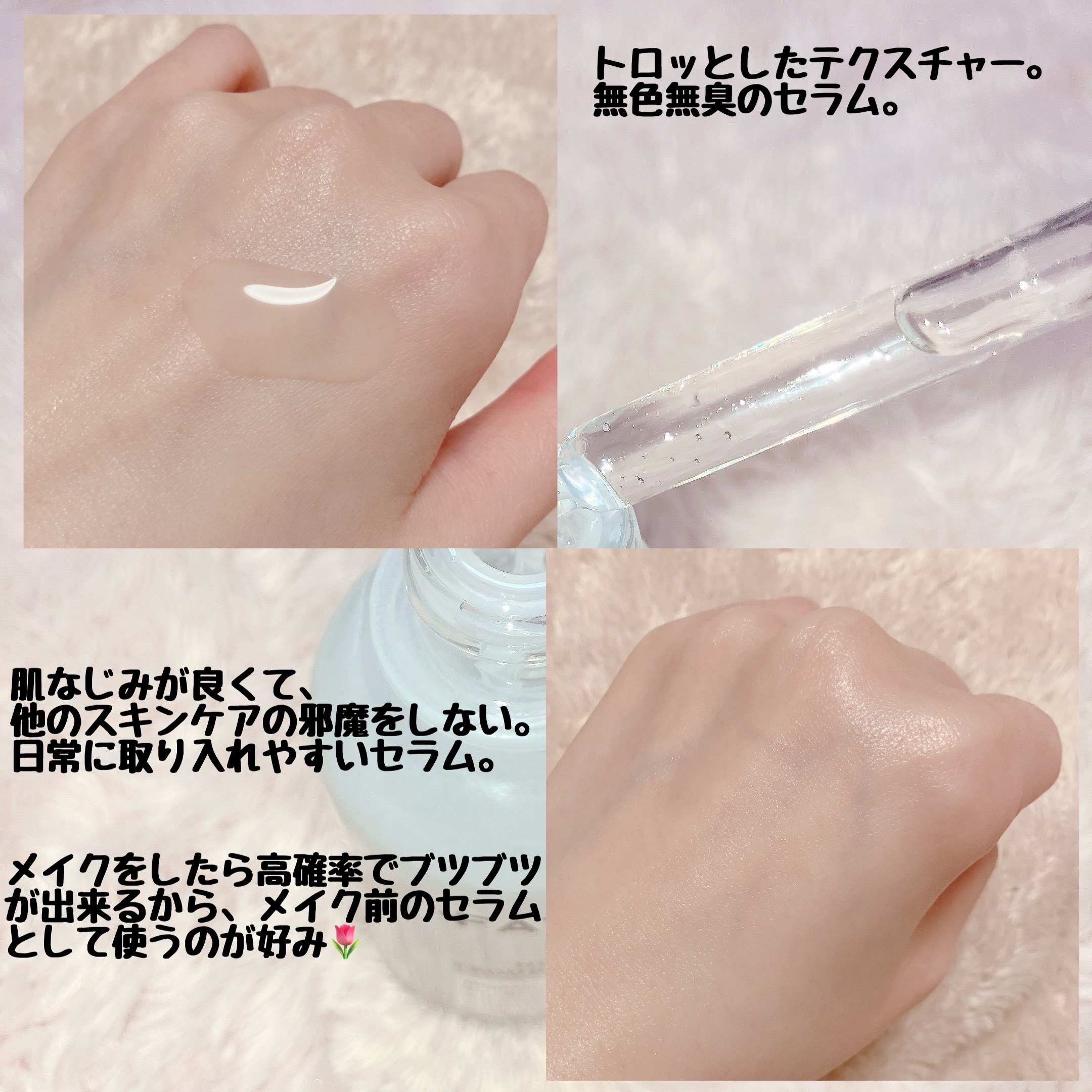 | とろみのあるテクスチャーだけど、肌にのばすとさらっとしていてみずみずしい使用感だよ☺️ | 詳細を見る | |
