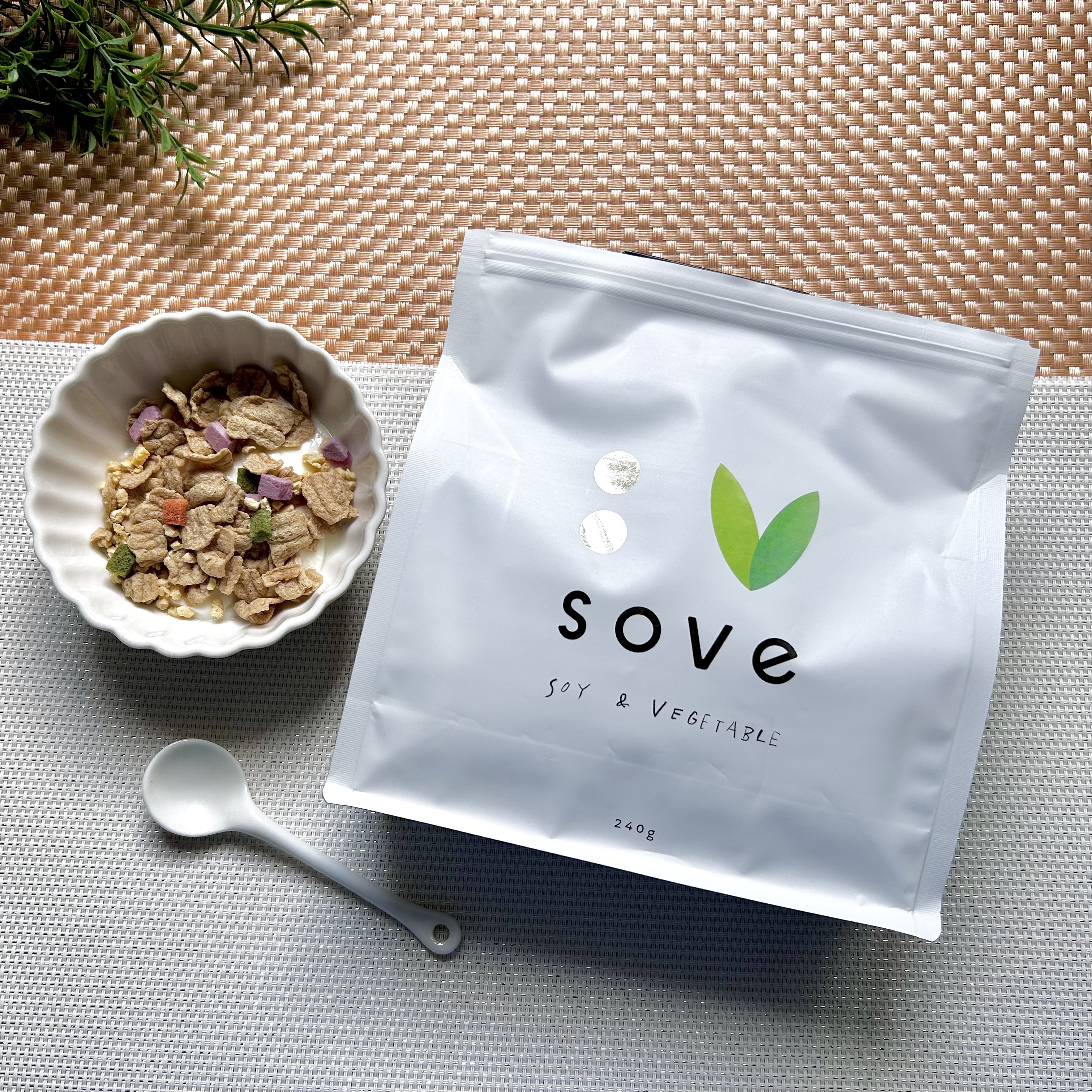 たんぱく質と食物繊維、そしてカリウムがしっかりとれてるSOVEシリアル(オリジナル/ストロベリーブレンド)。 素材の美味しさが損なわれにくい製法で作られていてとても美味しいんです。 オリジナルをスープと合わせて食べるのが最近好きな食べ方です。寒くなってきましたので、温かいスープが飲みたくなるのですが、それにSOVEシリアルオリジナルを足すと、たんぱく質+食物繊維+カリウムで栄養バランスアップ! 手軽で美味しく、栄養もちゃんと摂れる! ホントおすすめです。