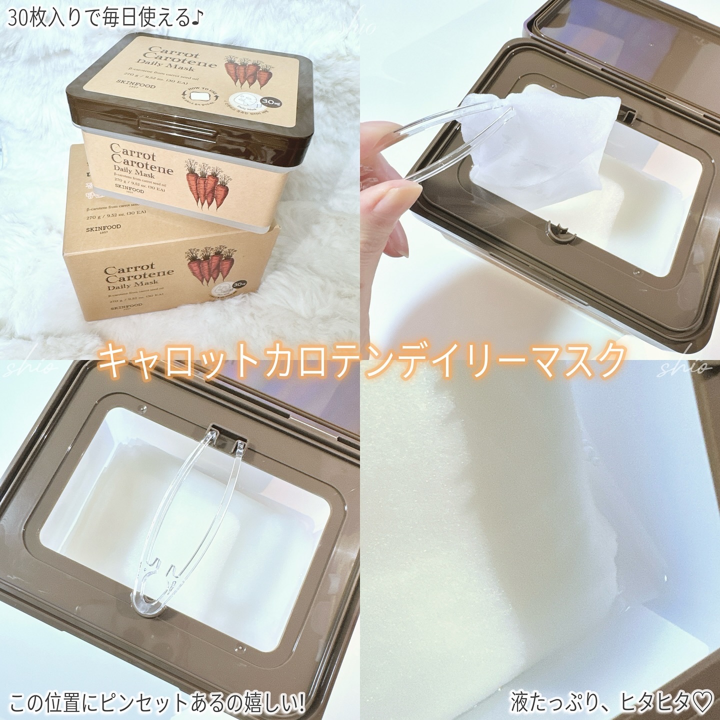 (キャロットパッドは2年連続でオリーブヤングパッド部門で1位を獲得した大人気パッド) たっぷりヒタヒタのエッセンスでめちゃくちゃ肌当たりが良くて、さっぱりなのに程よいしっとり感もあって気持ちよく拭き取りできます。 デイリーマスクは5分でOKなところが忙しい時には助かる♪ピタッと密着するしグイグイ入ってくれるのかシートマスクが乾いてくるぐらい!