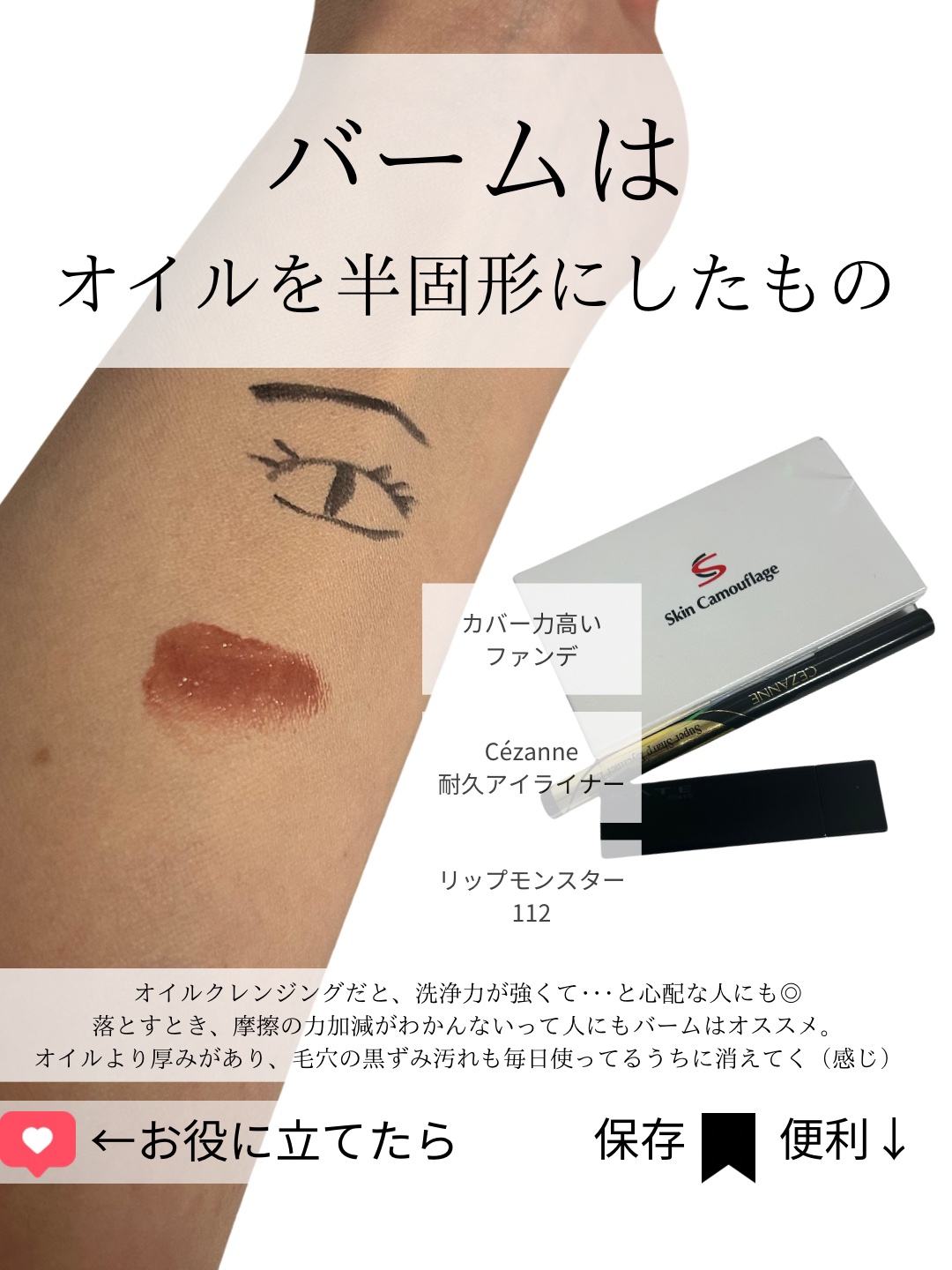 | バームが取ってみるとじんわりととろけてきて、なめらかなテクスチャーに!馴染ませやすくて使いやすいです。 | 詳細を見る | ||