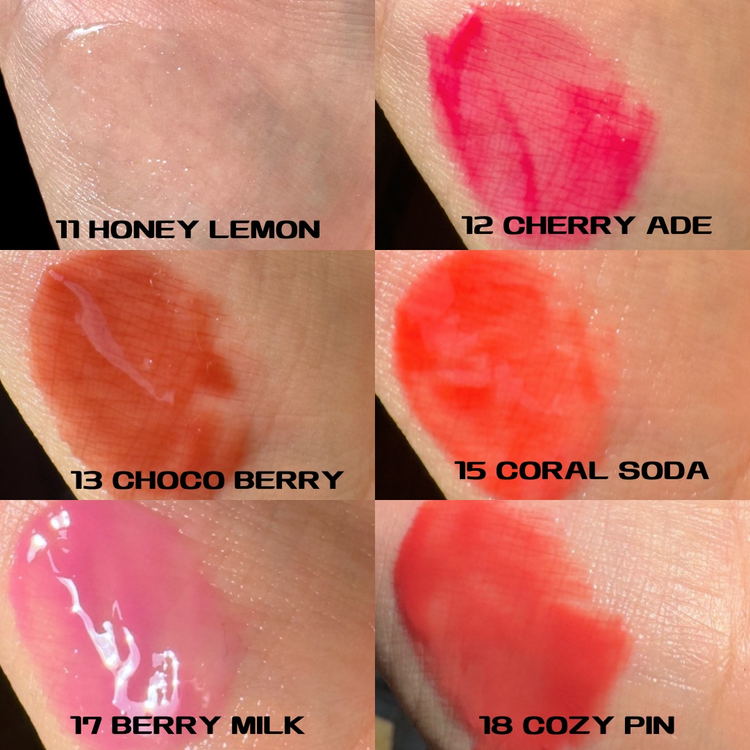 グロスっぽい塗り心地 ティントだから落ちにくい 個性的なカラーもあり 乾燥もしないし口紅がうるツヤです☺︎︎✨✨ 私が好きなカラーは1.2.3.6が好きです😘 008や010はすごく個性的だと思いました
