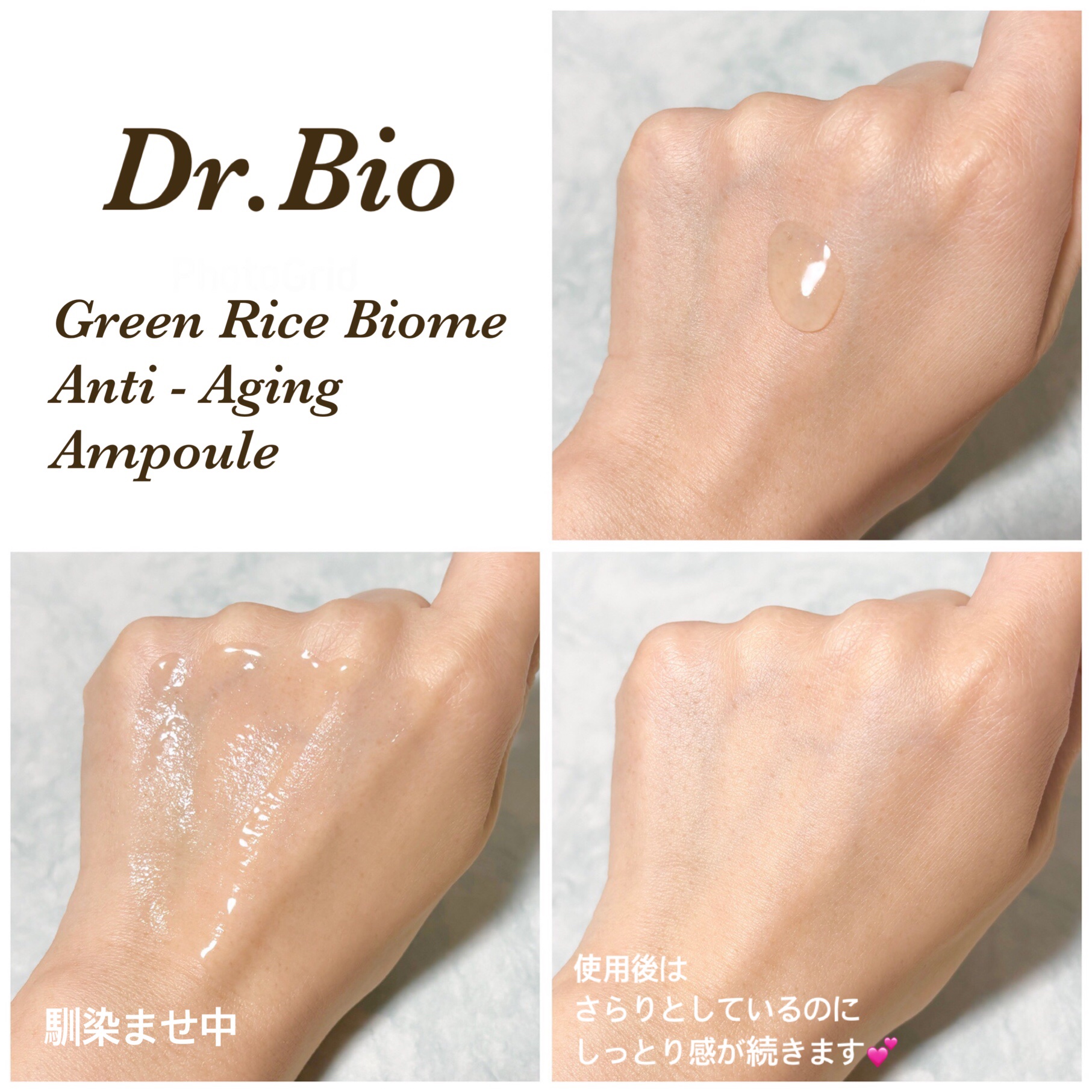 美白効果や肌バリア強化をサポートする緑米エキスとDr.Bioが独自に開発したプロバイオティクス(乳酸菌)成分を最適に配合。 水分たっぷりのジェルのようなデクスチャーで肌をうるおいで満たしてくれるような使い心地。 お米の形をイメージした、コロンとしたフォルムのパケが可愛い✨