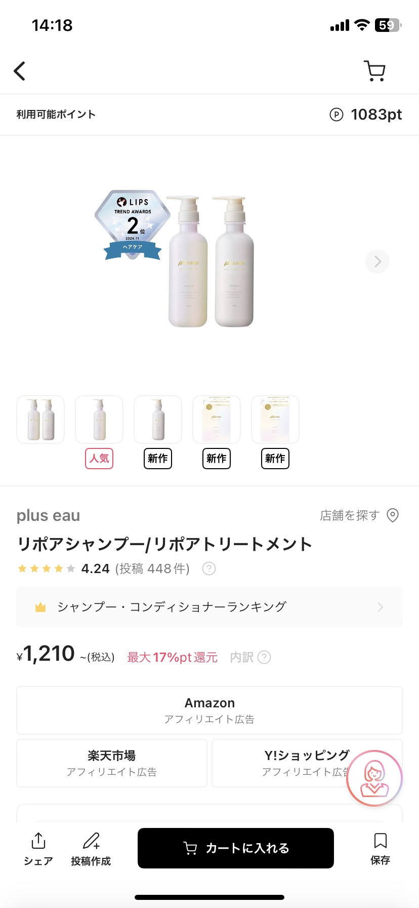 - LIPSベストコスメ2025 総合大賞9位LIPSベストコスメ2025 シャンプー・コンディショナー部門1位LIPSベストコスメ2025 上半期新作大賞5位LIPSベストコスメ2025 上半期新作賞 シャンプー・コンディショナー部門1位LIPS月間トレンド賞2024年11月 ヘアケア部門2位
