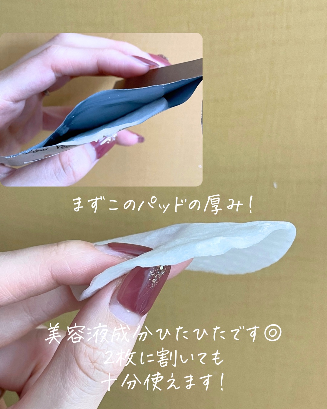 - 紫外線ダメージによりデリケートになった肌の乾燥によるトラブルをケアします。 <使用方法> 洗顔後、パッドを1枚取り、目と口の周りを避けて、顔全体をやさしくふき取ります。 集中ケアする場合は、新しくパッドを適量取り気になる部分へ5~10分置いてからはがし、残った液は、お肌になじませて下さい。