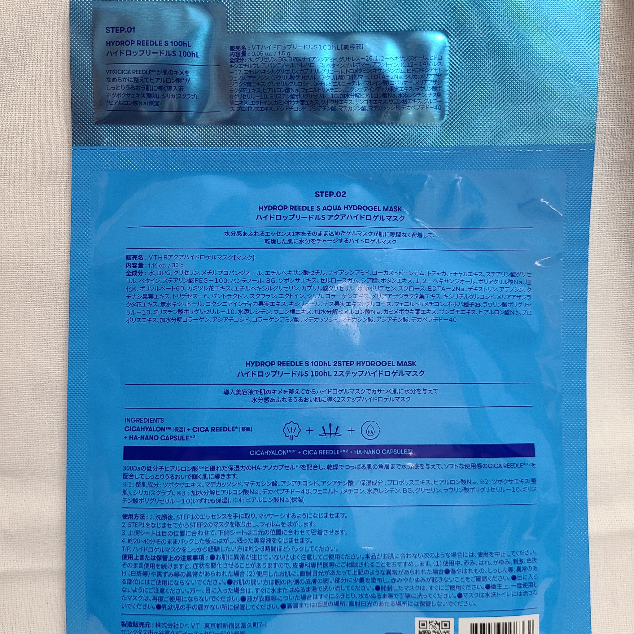 商品詳細情報VT ハイドロップリードルS 100hL 2ステップハイドロゲルマスク