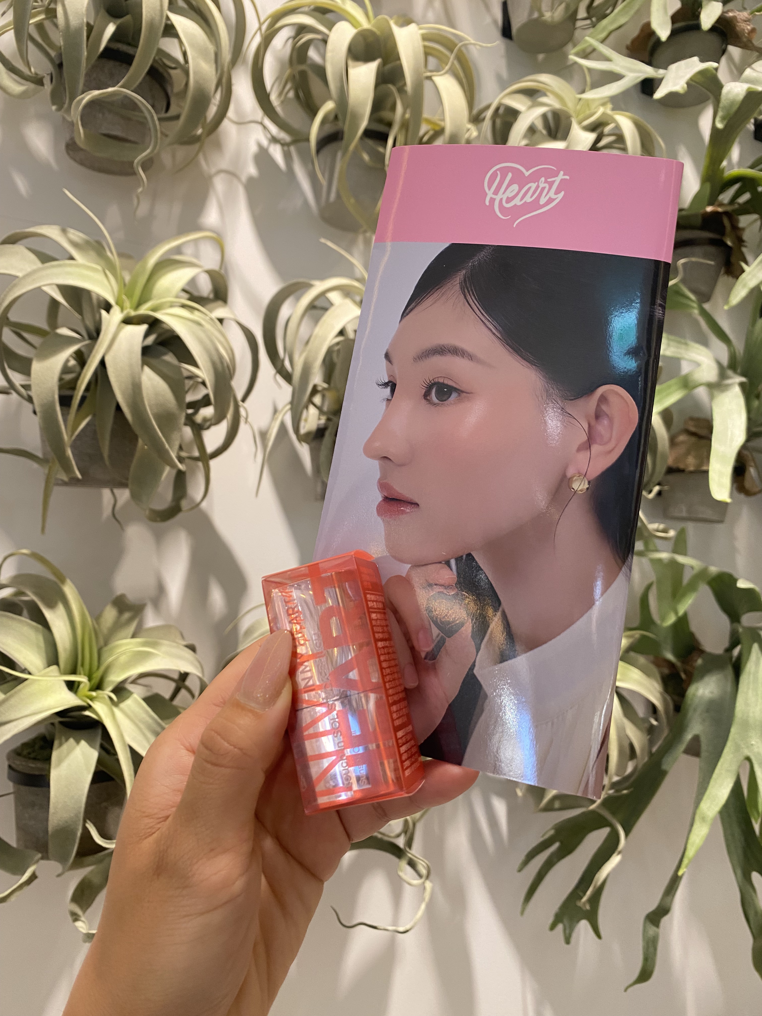 今回はサンセットコーラル!!オレンジすぎないナチュラルなコーラルが使いやすくてお気に入り、ハートの可愛いパッケージで中身もハートで凄く可愛い❤️ྀི 可愛いしクリーミーなテクスチャーで密着するので、綺麗に仕上がるし、しっとりとしてツヤのある感じが好き! 鮮やかに発色するので、指でポンポンぼかして使うのが良いです。24時間持つのも素晴らしい✨