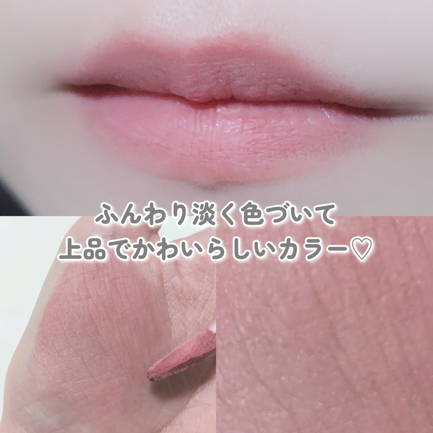 柔らかなくすみローズで 誰にでも使いやすそうなカラー◎ 白みのあるくすみピンクで ブルベさんにおすすめ! どのカラーも肌馴染みが良いから ナチュラルなリップが好きな人にぜひ使って欲しい!