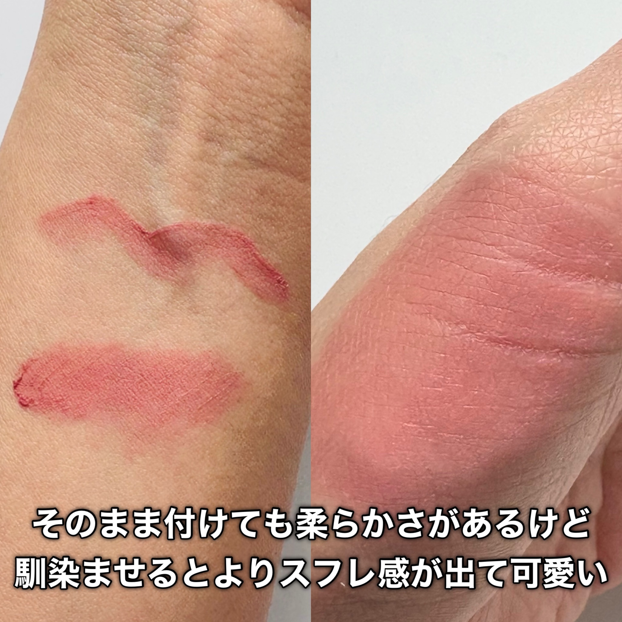 唇のシワが気になる人歓喜👏✨ 唇のシワが目立たないリップアイテム👀💕 ベールがかかったように薄く軽く密着してスムーズに伸びる柔らかいスフレテクスチャー Dintoはリップに関わらず、どのアイテムも絶妙な可愛いカラーのラインナップが豊富だと思っていてどのカラーも間違いないんだよね💡