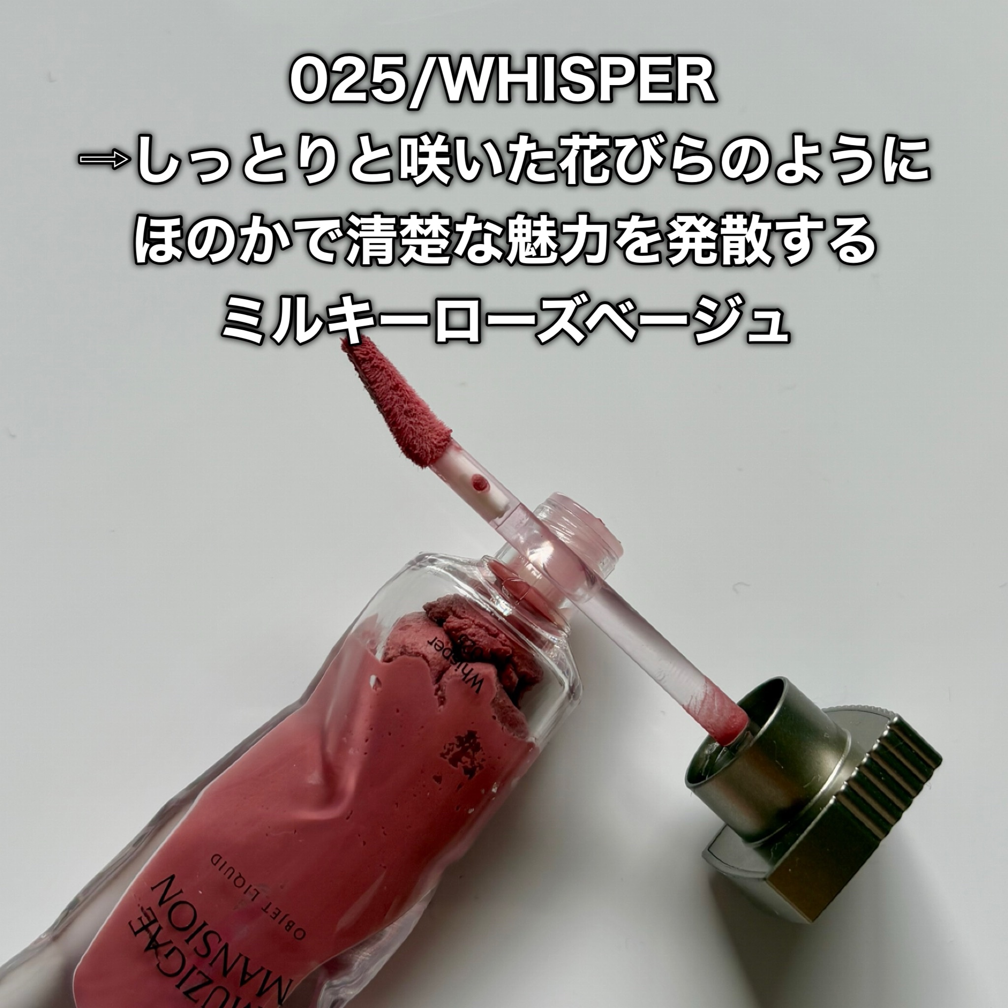 スフレのようなテクスチャーでスルスル〜っとなめらかに塗れます◎ ローズの香りがふんわり良い香り♡ マットなのにフィルターをかけたように縦ジワがカバーされて 乾燥も気にならないのが嬉しい🥰 025 WHISPERはしっとりと咲いた花びらのようにほのかで清楚な魅力を発散するミルキーローズベージュカラー🌸