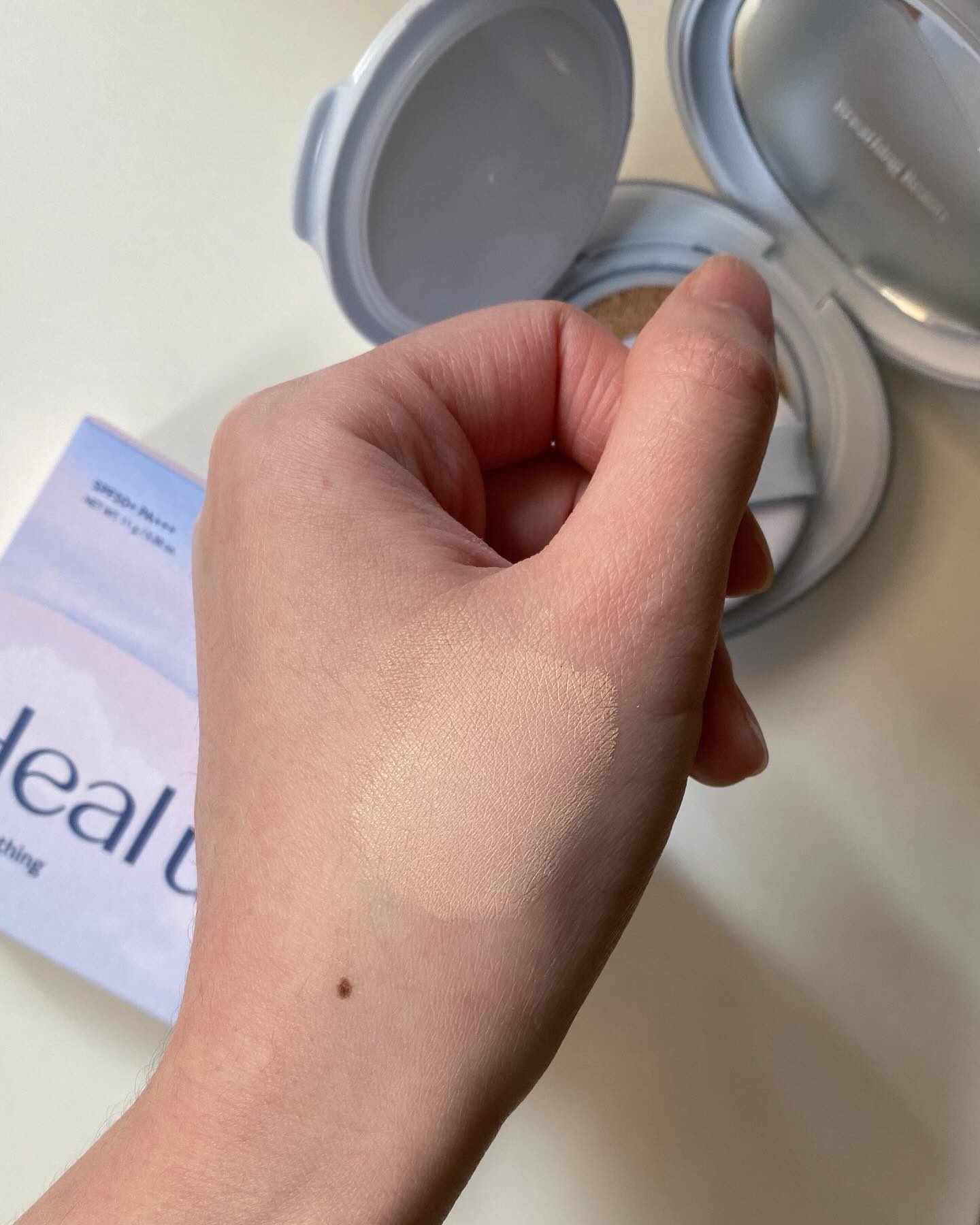 Sunny Noon (清潔で空の上の明るいふわふわした雲)をイメージしたクッションファンデ🫶🏻 軽くてさらさらで快適なつけ心地✨ カバー力あるけどナチュラルで密着も◎ 私は21号使用したけどニュートラルトーンだからイエベもブルベも全ての肌トーンに使えるよ👌🏻