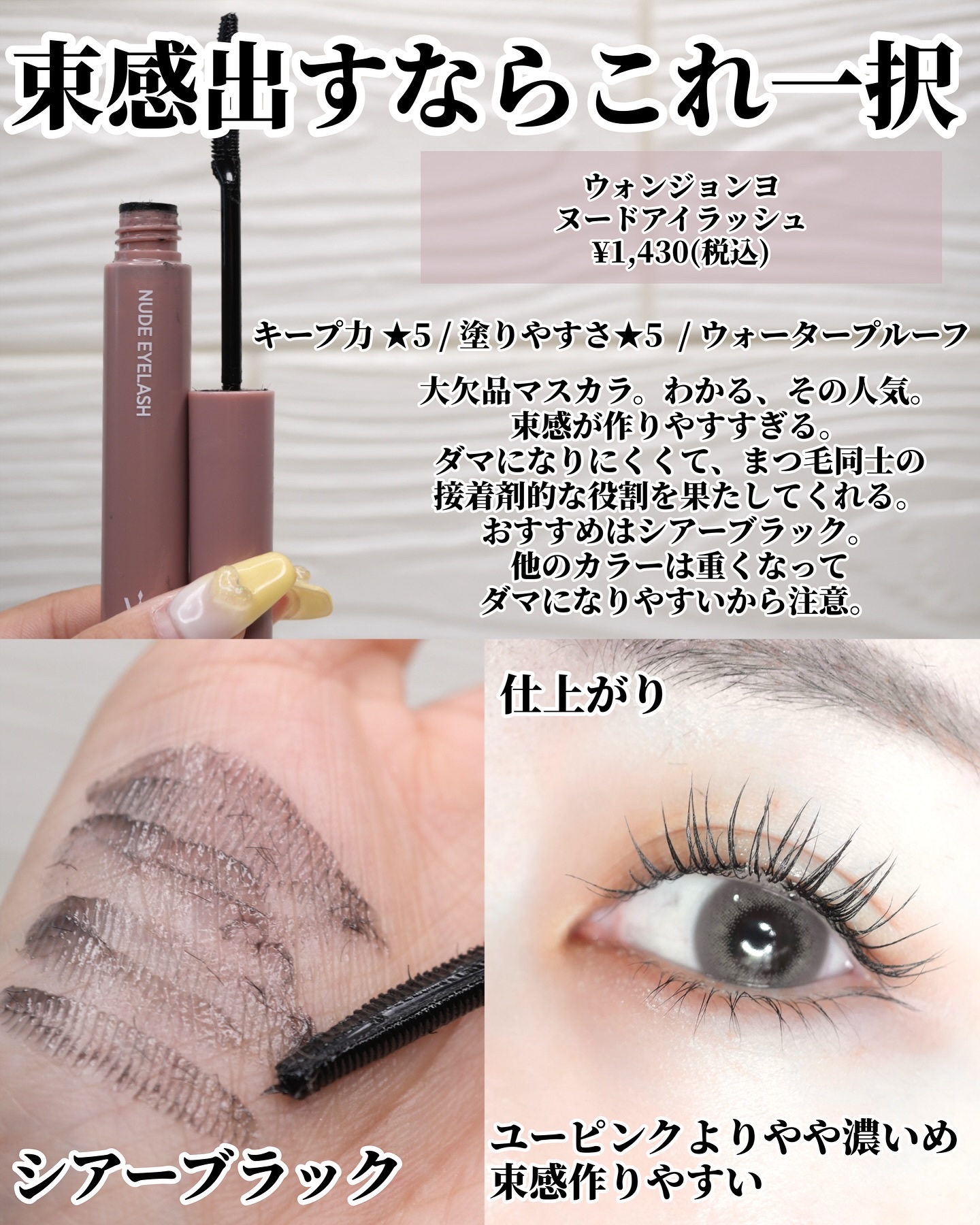 どれも2000円以内で買えるプチプラアイテム。 ウォータープルーフで普通のクレンジングでも落ちにくいので(特にロムアンド)、マスカラリムーバーでオフするのがオススメです! 参考になれば幸いです🙇♀️❤️