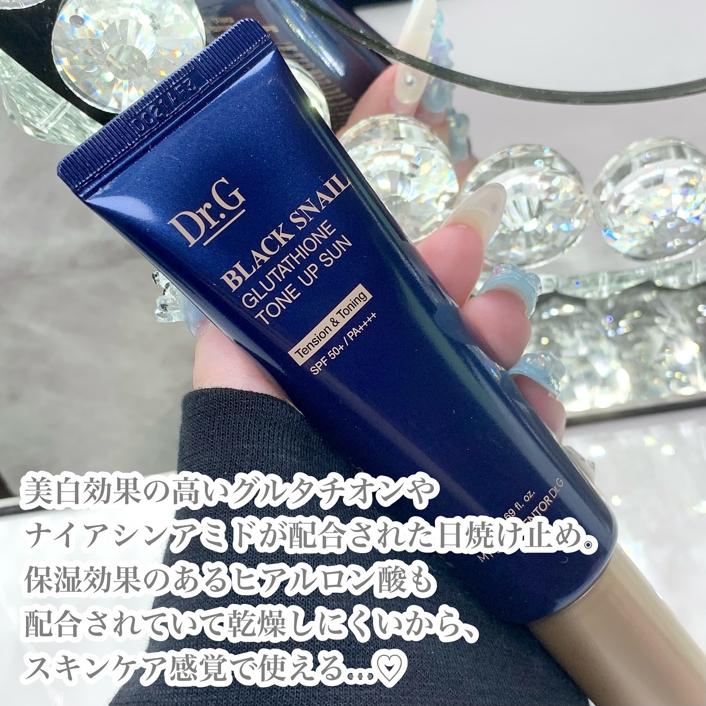 栄養いっぱいのブラックスネイルにプロポリスを配合、更に低刺激のレチノールを合わせた、Dr.G様の独自成分✨ 肌のキメを整えて、毛穴・ハリケア、シミやくすみ予防も🥹 エイジングケアで目指せ-6歳肌🫧 ほんのりピンクで、多幸感あふれるツヤ肌へ✨ UVケアしつつ、グルタチオン、ナイアシンアミド、ブライトニングヒアルロン酸の豪華成分でスキンケアもできるのが嬉しい🎶