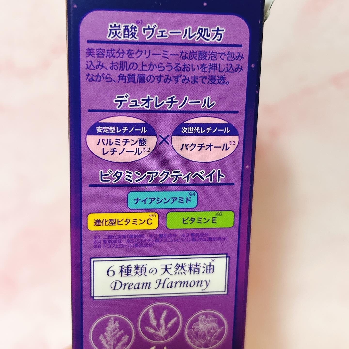 2種類のレチノール(パルミチン酸レチノール、バクチオール)〈整肌成分〉、ナイアシンアミド、進化型ビタミンC(パルミチン酸アスコルビルリン酸3Na)、ビタミンE(トコフェロール)〈すべて整肌成分〉配合 肌にのせた時はパチパチする感じがあり、5分後残った泡を肌に馴染ませるとしっとり♡♡ 翌朝、もっちりとした肌になっていました。週1とかで肌ケアに使いたい💗