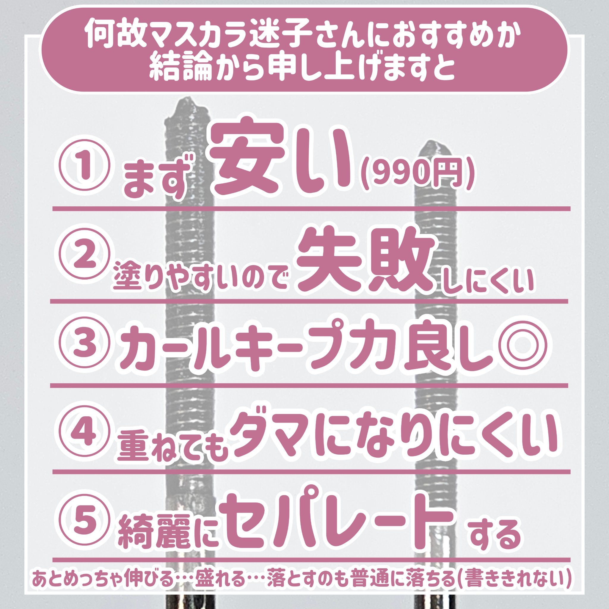| メイクアップランキング第41位 | コームタイプで塗りやすく ナチュラルな仕上がりでカールキープ力◎ | 詳細を見る | |