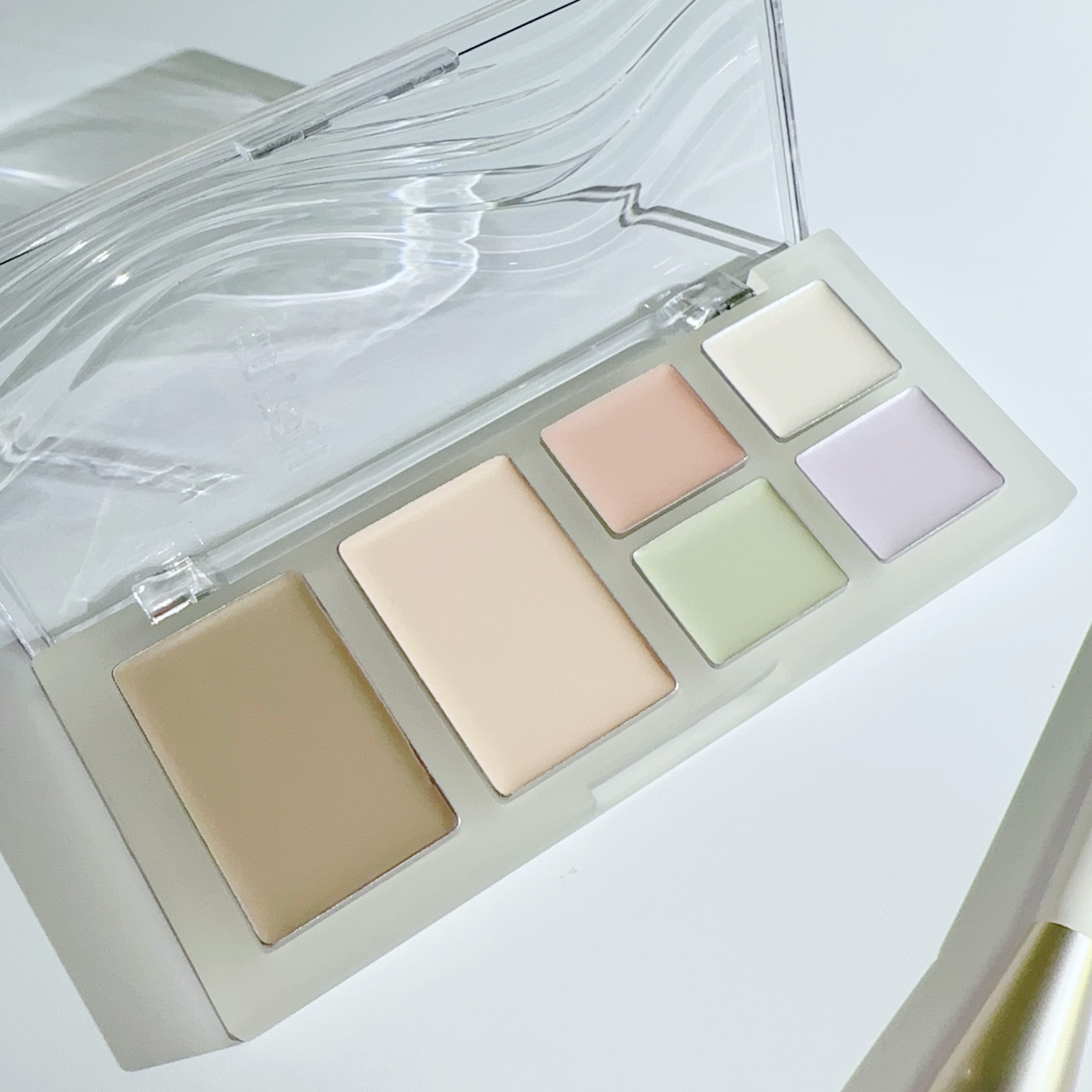 - 6色のカラーが入った、コンシーラーパレットで、コンシーラーとしてだけでなく、シェーディング、ハイライト、トーン調整が可能です。 ピーチ: クマカバーにおすすめ。保湿力が高く、ナチュラルなツヤ感です。 グリーン:ニキビや赤みのカバーにおすすめ。滑らかなテクスチャーで、カバー力が高いです。 パープル: くすみカバーにおすすめ。保湿力が高く、ナチュラルなツヤ感です。 ハイライト: 光の屈折を利用し、自然で柔らかい輝きを与えます。 シェーディング: 自然に影を演出し、しっかりと密着します。 コンシーラー: 滑らかなテクスチャーで、カバー力が高いです。