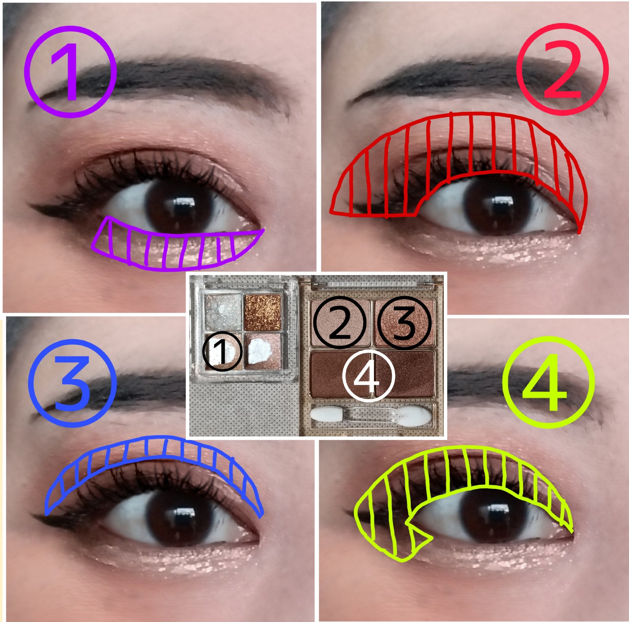アイシャドウパレットは、URGLAM UR GLAMBLOOMING EYE COLOR PALETTE 02を、使用しました。 マスカラは、MAYBELLINE NEW YORK コロッサルボリュームエクスプレスを、まつ毛全体にまんべんなく塗ります。 リップは、wet 'n' wild MegaLast Lip Colorを、唇全体にまんべんなく塗ります。