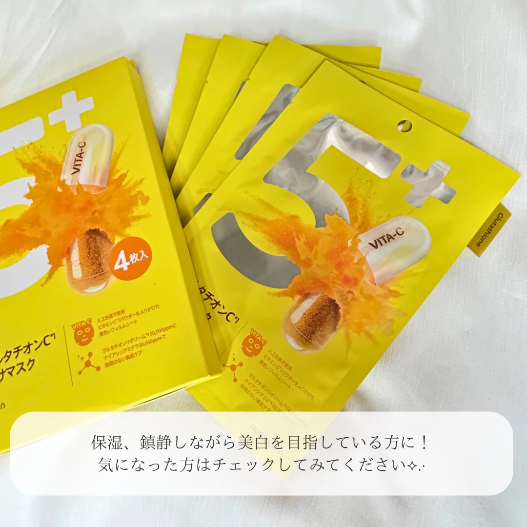 - ※2025年8月以降、商品パッケージ順次リニューアル。尚、これにかかる商品の返品・交換は承っておりません。 顔全面に隙間なく照明ON!ビタミンC*1をふりかけた黄色いシートに高濃縮グルタチオンC*1美容液を入れ込んだ、くすみ*2集中ケアシートマスク *1整肌成分 *2乾燥によるもの