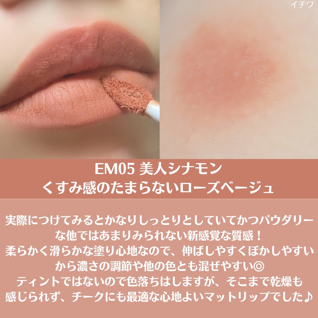 | ふんわり柔らかなつけ心地のもちもちリップ。しっとりした仕上がりなので、マット使ったことない人も試しやすいと思う◎ | 詳細を見る |