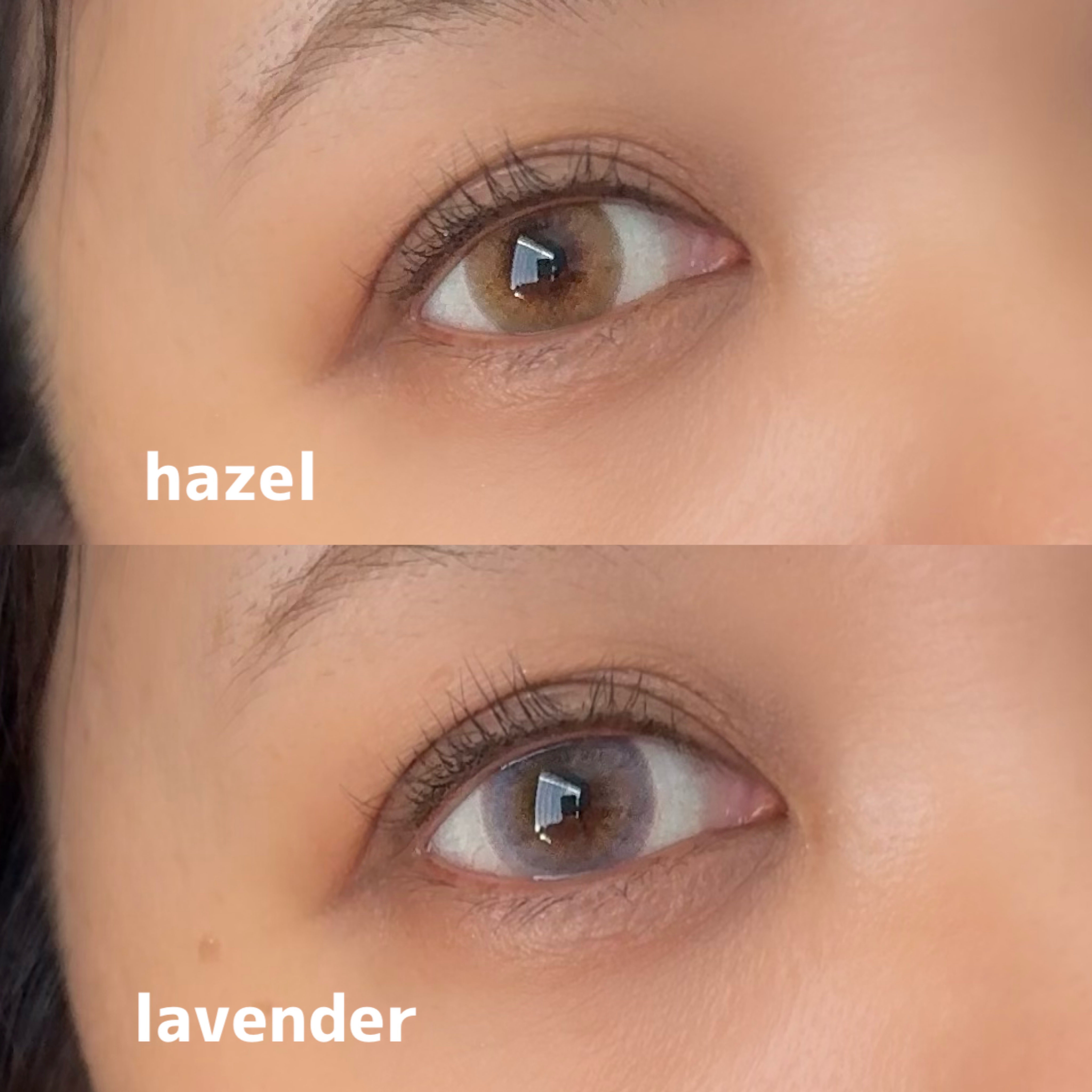 OLENSのひとみに馴染む感は凄いと思う。 自然に馴染む華やかなヘーゼルカラー 垢抜ける!!! ふんわりカラーなのに盛れるよ☺︎ 透明感爆上がり!! 裸眼の黒目はしっかりめだけど綺麗なふんわりラベンダーになれた♡
