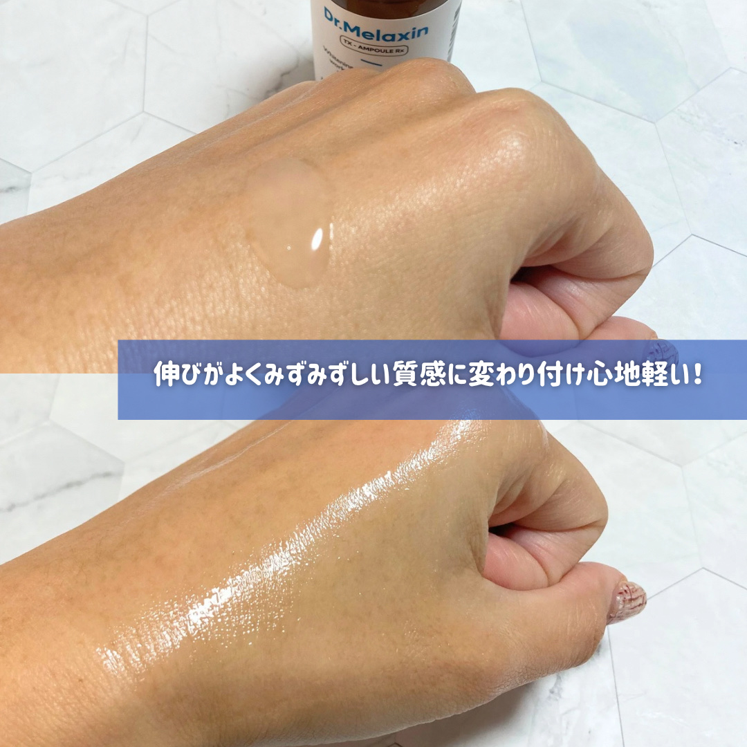 べたつかずさらっとしたテクスチャで季節を問わず年中使用可能! ドクターメラクチンはトラネキサム酸をナノリポソーム化しより吸収させやすくするスキンケアトラネキサム酸(TX)1美肌ラインを開発 アンプルは伸びがよく、少しとろみがあって塗りやすかったです!