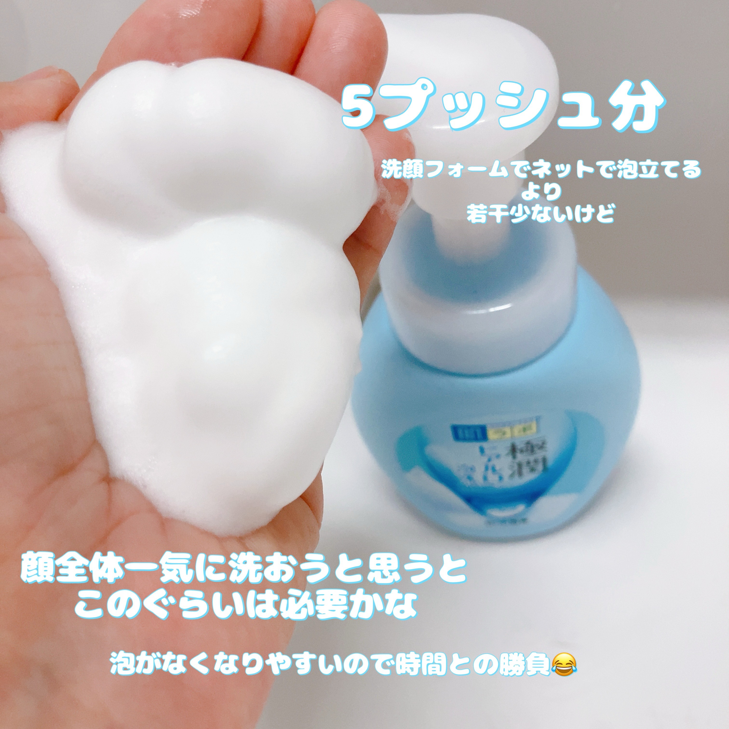 - 「肌ラボ 極潤 ヒアルロン泡洗顔」は、うるおい感と心地よい洗い上がりにこだわった洗顔料です。 3種のヒアルロン酸*1配合の濃密な泡。うるおいを守りながら汚れを落とし、洗うたび健やかなもちもち肌へ導きます。 W洗顔不要でメイクも落とせます*2。 肌へのやさしさに配慮した、無香料・無着色・アルコール(エタノール)フリー・パラベンフリー。 肌ラボは、「肌にいいこと」を突き詰め、健康な素肌を目指す「ヘルススキンケアブランド」です。肌が本当に求めるうるおいを追求すべく、うるおい成分であるヒアルロン酸にこだわり抜き、必要なものはできる限りそぎ落として、デザインも容器もシンプルに。 *1:うるおい成分:ヒアルロン酸ヒドロキシプロピルトリモニウム(肌吸着型ヒアルロン酸) 、アセチルヒアルロン酸Na(スーパーヒアルロン酸)、ヒアルロン酸Na *2:アイメイクなどのポイントメイクには、専用リムーバーのご使用をおすすめします。