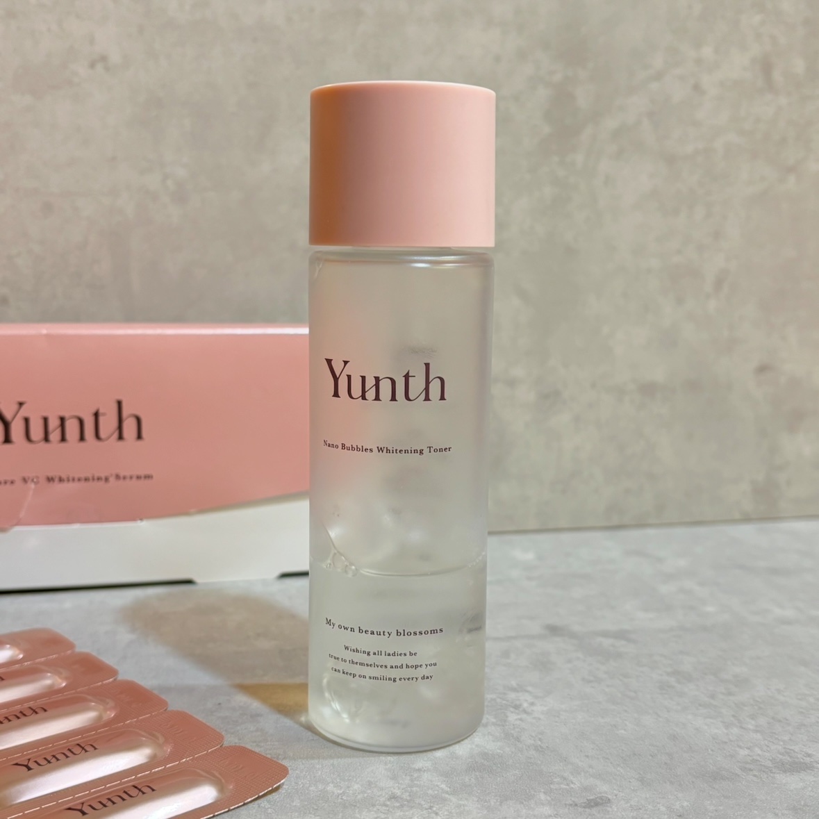 - 【医薬部外品】 ①美白※1×肌荒れ防止 -Wの有効成分配合の医薬部外品 美白※1と肌荒れ防止の2つ薬用成分配合。 L- アスコルビン酸 2‐グルコシド(ビタミンC誘導体)とグリチルリチン酸ジカリウムが、透明感※2と共に揺らぎがちなお肌をケア。 ②ナノエマルジョン粒子をプラス 毛穴の約1/3000サイズのナノエマルジョン化した粒子が角質層の隅々まで瞬感浸透。うるおいを抱え込み、使い続けるほど透き通るもっちり肌へ導きます。 ③生ビタミンC※3+保湿成分をたっぷり配合 Yunthでおなじみの“生ビタミンC※3”ほか、加水分解ヒアルロン酸、水溶性コラーゲン、パールエキス、シロクラゲ多糖体などの保湿成分を配合。とろっと濃密なテクスチャで、弾力のあるもっちりが続く肌に。Yunth 生VC美白美容液との相性の良い高保湿化粧水に仕上げました。 ④さらに使いやすく増量 よりたっぷりお使いいただけるよう、従来品から10ml増量しさらに価格を抑えました。 ⑤お肌に優しい5つのフリー処方 石油系界面活性剤、エタノール、パラベン、合成香料、着色料 フリー ※1 メラニンの生成を抑え、しみ・そばかすを防ぐ ※2うるおいにより与える印象 ※3 アスコルビン酸(湿潤) 公式ブランドサイト ・ショッピングモール ※7月17日(水)より先行予約販売開始 ※楽天市場は8月3日(土)発売予定