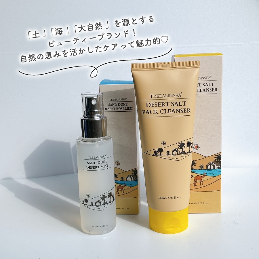 天然スクラブ剤 こんにゃく粒で優しい角質ケアが出来ちゃう二重洗顔しなくても一度に終わるパッククレンザー。肌の浄化とミネラル供給に優れた砂漠塩配合🧂 デザートローズエキスが90%以上配合され水分補給とお肌の鎮静をしてくれるミスト。爽やかなベルガモットの香り✨ 低刺激ビーガンフォーミュラで敏感肌さんでも使用可能なんだって🥰 もっちりしたテクスチャーでパックとして使うのがお気に入り🧡
