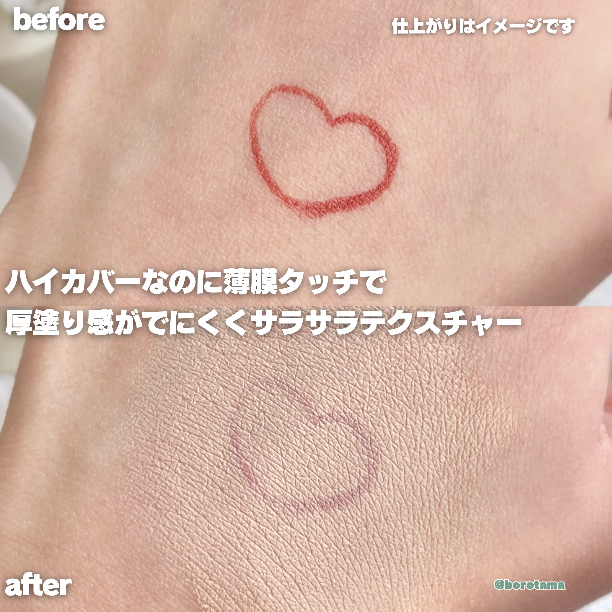 - <17C1 クールバニラ> 水、酸化チタン、メチルトリメチコン、ホモサレート、カプリリルメチコン、ジメチコン、トリメチルシロキシケイ酸、PEG-10ジメチコン、BG、グリセリン、シリカ、ラウリルPEG-8ジメチコン、(アクリレーツ/ジメチコン)コポリマー、1,2-ヘキサンジオール、パンテノール、加水分解ヒアルロン酸、カプリリルグリコール、エチルヘキシルグリセリン、メンタアルベンシス葉エキス、ハス花エキス、DPG、ステアリン酸、(ジメチコン/ポリグリセリン-3)クロスポリマー、PEG-2ソイアミン、ジステアルジモニウムヘクトライト、(ビニルジメチコン/メチコンシルセスキオキサン)クロスポリマー、トリヒドロキシステアリン、水酸化Al、マイカ、(HDI/トリメチロールヘキシルラクトン)クロスポリマー、ジメチコンケイ酸シリカ、塩化Na、トリイソステアリン酸イソプロピルチタン、(ビスPEG−15ジメチコン/IPDI)コポリマー、アルミナ、トリエトキシカプリリルシラン、シメチコン、クエン酸Na、トコフェロール、EDTA-2Na、香料、酸化鉄 <21N1 ベージュ> 水、酸化チタン、メチルトリメチコン、ホモサレート、カプリリルメチコン、ジメチコン、トリメチルシロキシケイ酸、PEG-10ジメチコン、BG、グリセリン、シリカ、ラウリルPEG-8ジメチコン、(アクリレーツ/ジメチコン)コポリマー、1,2-ヘキサンジオール、パンテノール、加水分解ヒアルロン酸、カプリリルグリコール、エチルヘキシルグリセリン、メンタアルベンシス葉エキス、ハス花エキス、DPG、ステアリン酸、(ジメチコン/ポリグリセリン-3)クロスポリマー、PEG-2ソイアミン、ジステアルジモニウムヘクトライト、(ビニルジメチコン/メチコンシルセスキオキサン)クロスポリマー、トリヒドロキシステアリン、水酸化Al、マイカ、(HDI/トリメチロールヘキシルラクトン)クロスポリマー、ジメチコンケイ酸シリカ、塩化Na、トリイソステアリン酸イソプロピルチタン、(ビスPEG−15ジメチコン/IPDI)コポリマー、アルミナ、トリエトキシカプリリルシラン、シメチコン、クエン酸Na、トコフェロール、EDTA-2Na、香料、酸化鉄 <23N1 サンド> 水、酸化チタン、メチルトリメチコン、ホモサレート、カプリリルメチコン、ジメチコン、トリメチルシロキシケイ酸、PEG-10ジメチコン、BG、グリセリン、シリカ、ラウリルPEG-8ジメチコン、(アクリレーツ/ジメチコン)コポリマー、1,2-ヘキサンジオール、パンテノール、加水分解ヒアルロン酸、カプリリルグリコール、エチルヘキシルグリセリン、メンタアルベンシス葉エキス、ハス花エキス、DPG、ステアリン酸、(ジメチコン/ポリグリセリン-3)クロスポリマー、PEG-2ソイアミン、ジステアルジモニウムヘクトライト、(ビニルジメチコン/メチコンシルセスキオキサン)クロスポリマー、トリヒドロキシステアリン、水酸化Al、マイカ、(HDI/トリメチロールヘキシルラクトン)クロスポリマー、ジメチコンケイ酸シリカ、塩化Na、トリイソステアリン酸イソプロピルチタン、(ビスPEG−15ジメチコン/IPDI)コポリマー、アルミナ、トリエトキシカプリリルシラン、シメチコン、クエン酸Na、トコフェロール、EDTA-2Na、香料、酸化鉄