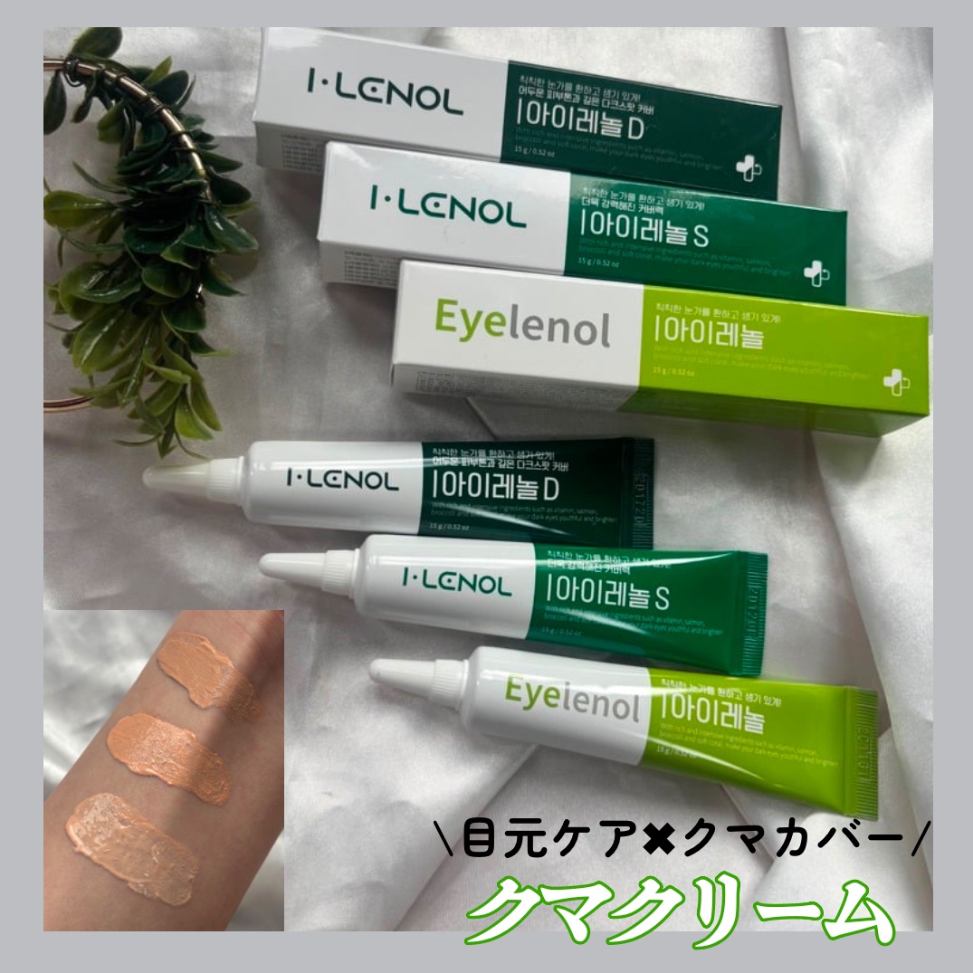 - <アイレノール クマクリーム> 水、シクロペンタシロキサン、グリセリン、ナイアシンアミド、ツボクサ葉エキス、サンゴエキス、パンテノール、イソヘキサデカン、ヒドロキシエチルウレア、ジメチコノール、アラントイン、グリチルリチン酸2K、プロパンジオール、カプリルヒドロキサム酸、香料、オリーブ果実油、酢酸トコフェロール、ホホバ種子油、オレイン酸ソルビタン、アルガニアスピノサ核油、アデノシン、エチルヘキシルグリセリン、プルラン、ヒアルロン酸Na、EDTA-2Na、トリデセス-6、DNA-Na、(アクリル酸グリセリル/アクリル酸)コポリマー、リノール酸グリセリル、ペンチレングリコール、リノレン酸グリセリル、アラキドン酸グリセリル、パルミチン酸レチノール、ラウリン酸K、ピーナッツ油、ヒアルロン酸クロスポリマーNa、トマト果実エキス、ブロッコリーエキス、ケール葉エキス、キャベツ葉エキス、チャ葉エキス、レモン果実エキス、アスパラガスエキス、フラガリアチロエンシス果実エキス、カキ葉エキス、トウガラシ果実エキス、水溶性プロテオグリカン、アスタキサンチン、ヒアルロン酸、トコフェロール、パルミチン酸アスコルビル、酸化チタン、酸化鉄、他 <アイレノール クマクリームS> 水、シクロペンタシロキサン、グリセリン、ナイアシンアミド、ツボクサ葉エキス、サンゴエキス、パンテノール、イソヘキサデカン、ヒドロキシエチルウレア、ジメチコノール、アラントイン、グリチルリチン酸2K、プロパンジオール、カプリルヒドロキサム酸、香料、オリーブ果実油、酢酸トコフェロール、ホホバ種子油、オレイン酸ソルビタン、アルガニアスピノサ核油、アデノシン、エチルヘキシルグリセリン、プルラン、ヒアルロン酸Na、EDTA-2Na、トリデセス-6、DNA-Na、(アクリル酸グリセリル/アクリル酸)コポリマー、リノール酸グリセリル、ペンチレングリコール、リノレン酸グリセリル、アラキドン酸グリセリル、パルミチン酸レチノール、ラウリン酸K、ピーナッツ油、ヒアルロン酸クロスポリマーNa、トマト果実エキス、ブロッコリーエキス、ケール葉エキス、キャベツ葉エキス、チャ葉エキス、レモン果実エキス、アスパラガスエキス、フラガリアチロエンシス果実エキス、カキ葉エキス、トウガラシ果実エキス、水溶性プロテオグリカン、アスタキサンチン、ヒアルロン酸、トコフェロール、パルミチン酸アスコルビル、酸化チタン、酸化鉄、他