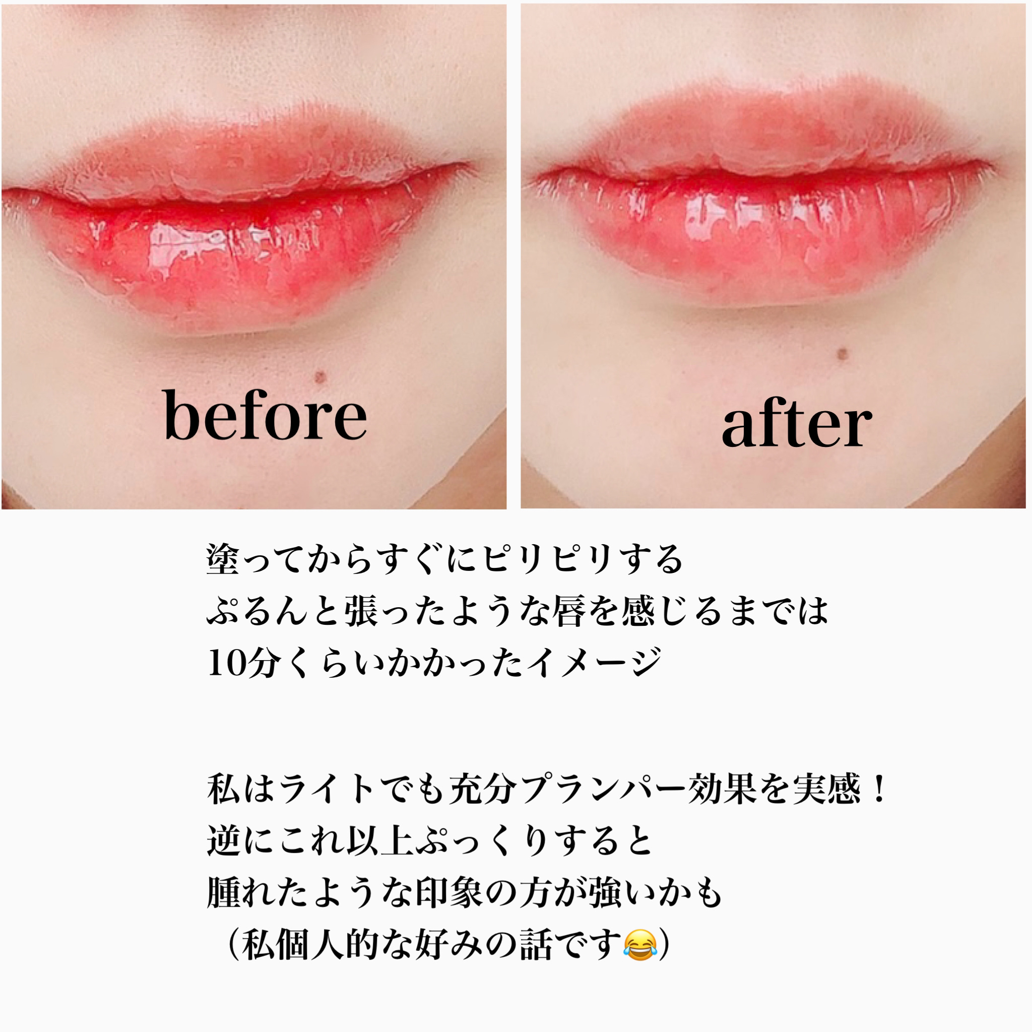 初心者向けのライトを使ってみたよ⋆꙳ プランパーリップは大好きで色々使ってるけど、結構ピリピリする..! このライトでも縦じわは綺麗に消えるし、唇もぷっくり見えるのでこれで十分でした🫶✨ めちゃくちゃ液漏れする😭😭😭 ポーチの中に入れてたらポーチベッタベタになった🥹