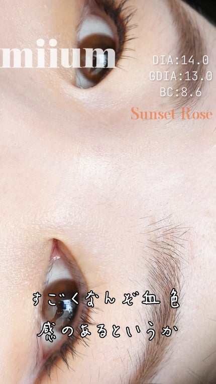 サンセットと言うだけあって夕日のように暖かいウォームカラーな発色! パッと見ちょっと明るすぎないかな?オレンジにならないかな?と思うんだけど、黒目の私にはちょうど良かったです。暗い黒目の私には自然な感じに深いブラウンの瞳にしてくれて、ブラウンメイクとの相性最高💄💖 ミュームのカラコンは着色直径小さめでふんわりフチなものが多いので、普段カラコンつけない私には使いやすくてとても好き😊