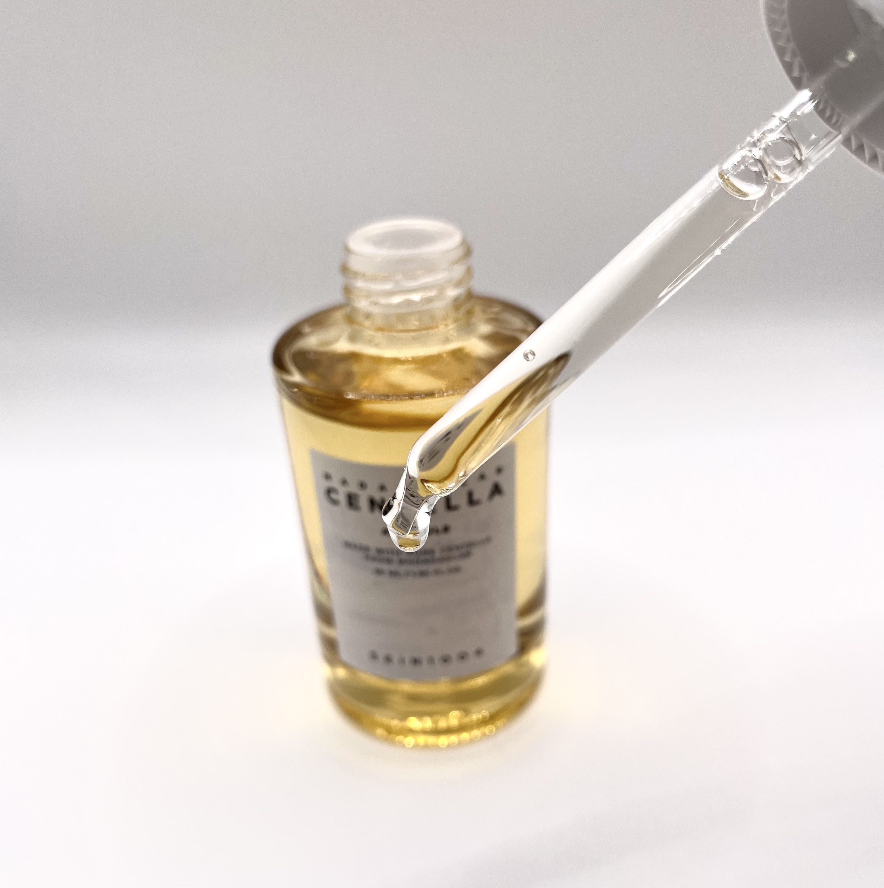 スポイト式で一回で顔全体に馴染む程、たっぷりの量が出ます。肌にスーッと馴染む美容液で、つけ心地は好きな感じです。 自然由来成分、ツボクサエキス(保湿成分)が入っておりテクスチャーはサラっとしている中でもしっとりする感じもあり、今は特に乾燥が気になるカサカサの肌ですが、潤いで守ってくれてありがたいです。 55mlでもたっぷりの量用で、容器のデザインもシンプルかつオシャレ!