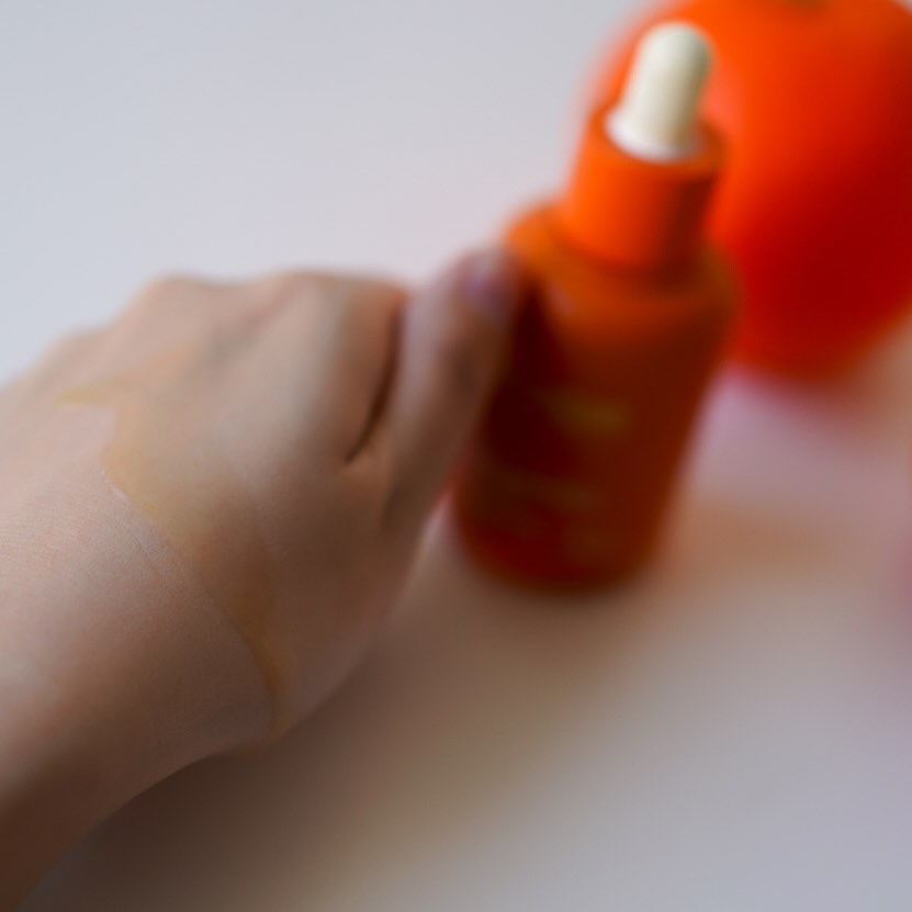 韓国ではシワ改善化粧品として認証されてるんだって😲✨ オレンジエキス72.91%の高含量で肌の弾力・肌のトーンケア 透明感のあるしっとりウォーターエッセンスタイプのセラムでさらっとして伸ばしやすいテクスチャーだった🧡