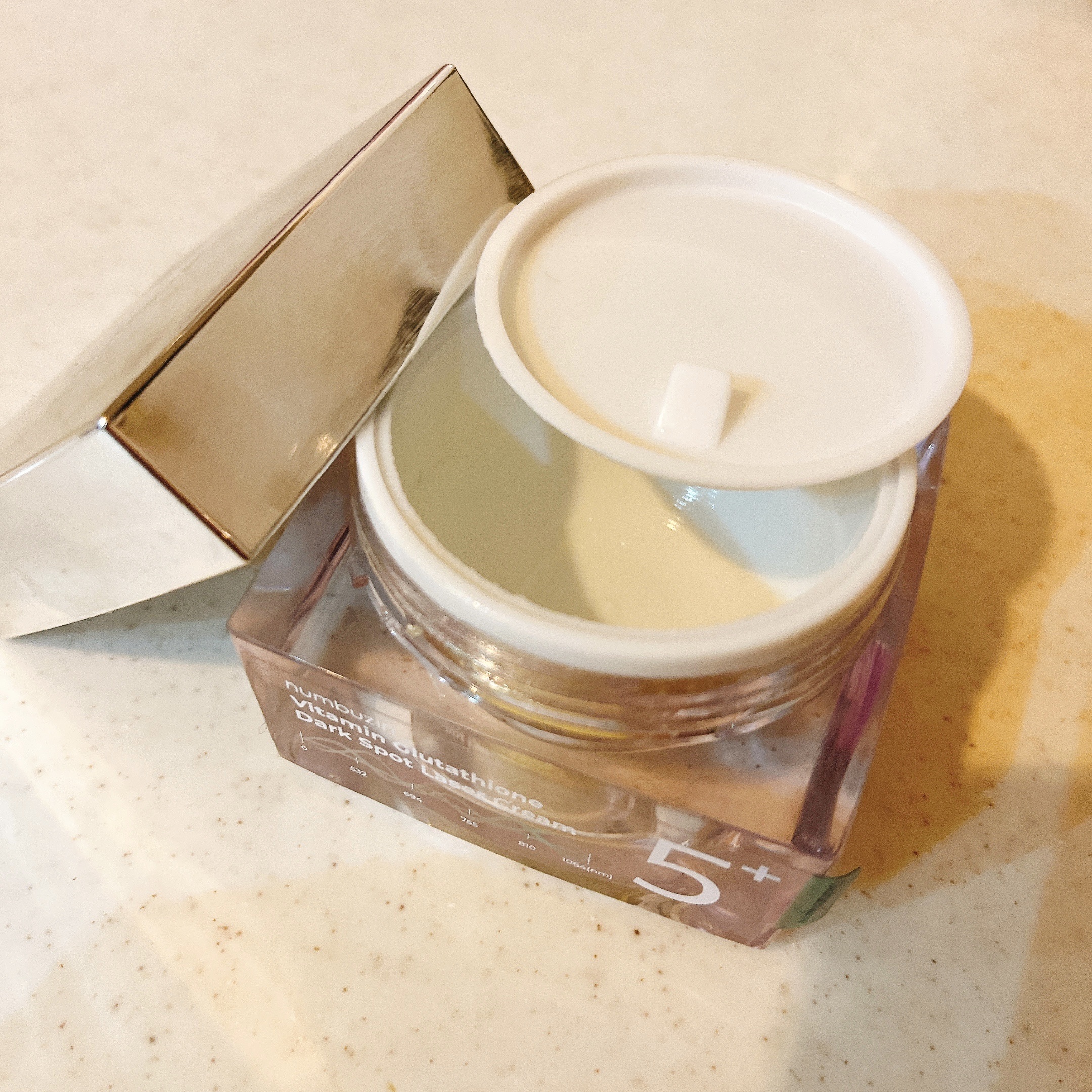 ナンバーズイン5番白玉グルタチオンCメラゼロクリームグルタチオン、Lシステイン、8GF、パンテノール配合のクリーム。古くなったメラニンを破壊して肌トーンを均一に💁♀️カスタードクリームのようなこっくりしたテクスチャで使い心地はかなりしっとり...