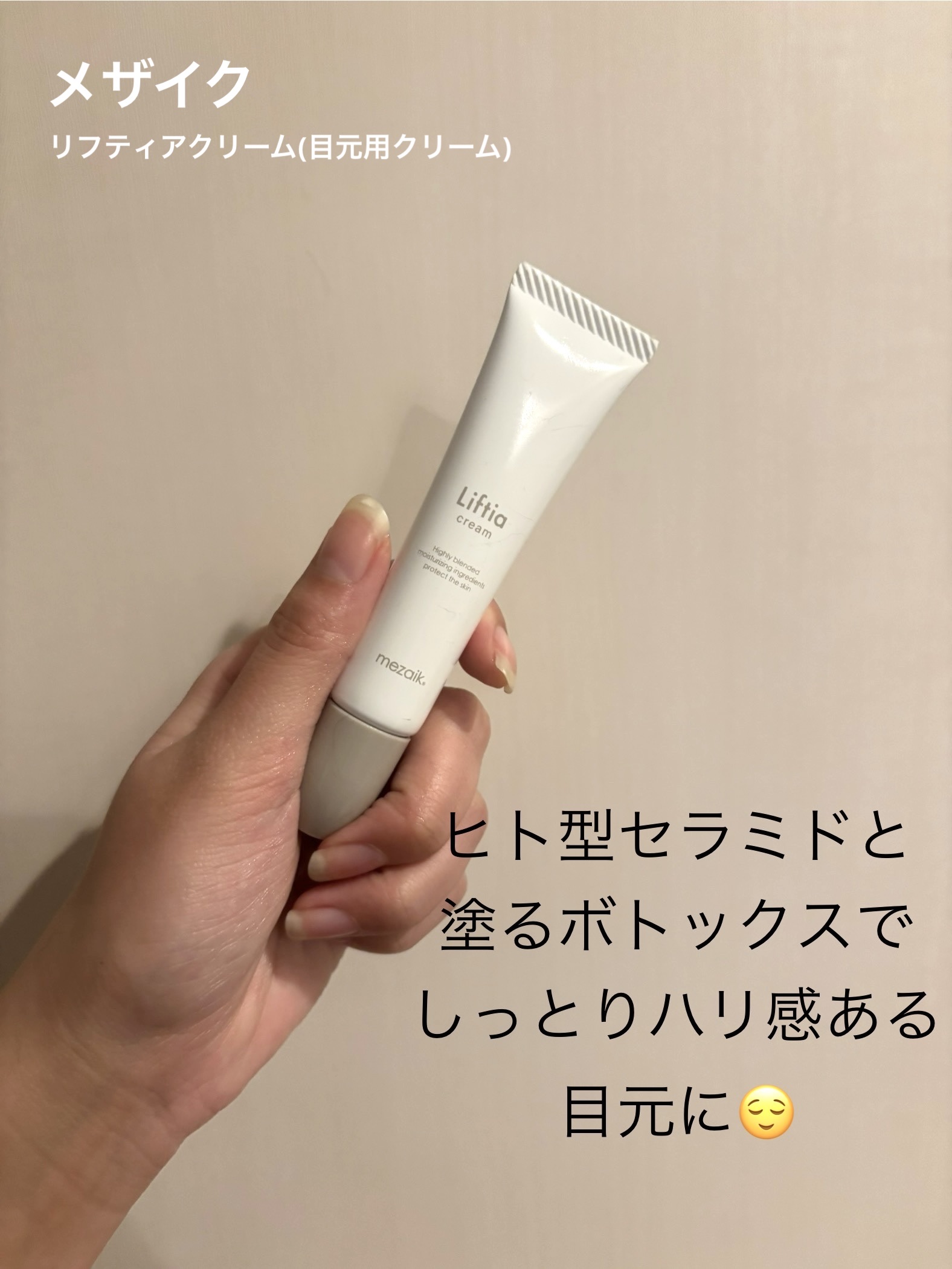 多方面からたるみの原因に働きかけてモッチリしたハリのある立体的な目元に導きます。 話題のヒト型セラミド(セラミド(EOP、AP、NP)、フィトスフィンゴシン)を高濃度配合 リフティアクリームみたいにさらっと軽い使い心地なのは嬉しい😊❤