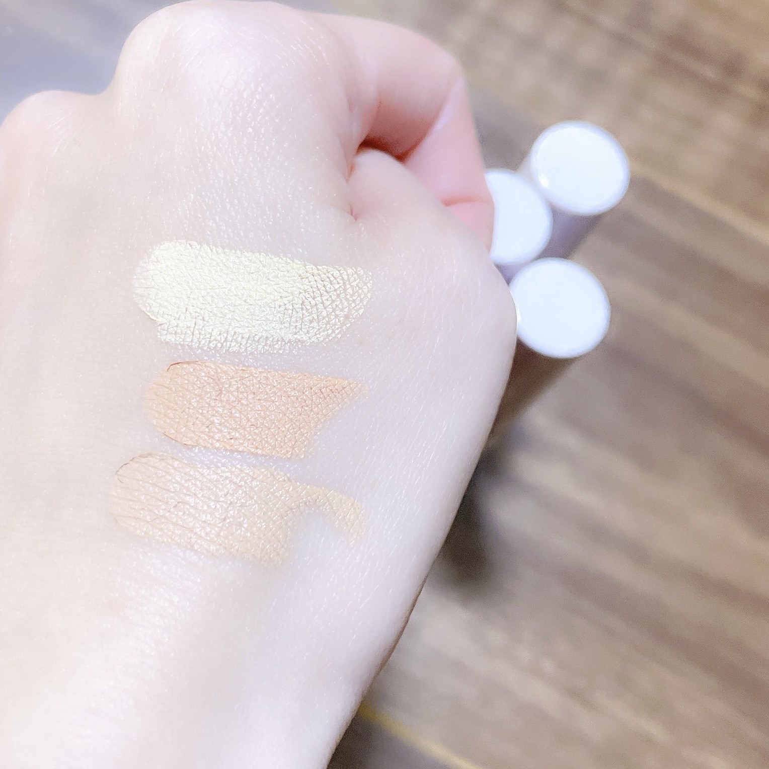 目元のクマ・くすみを自然にカバーする 薬用美白コンシーラー✨ 新色のイエローとオレンジが登場🍊🍋 オレンジ濃い“クマ”をカバー 目の下のクマ隠れてくれました!! イエロー“くすみ”をカバー ニキビ跡や目まわりの小鼻、口角、ほうれい線の影を自然にカバーしてくれます☺️