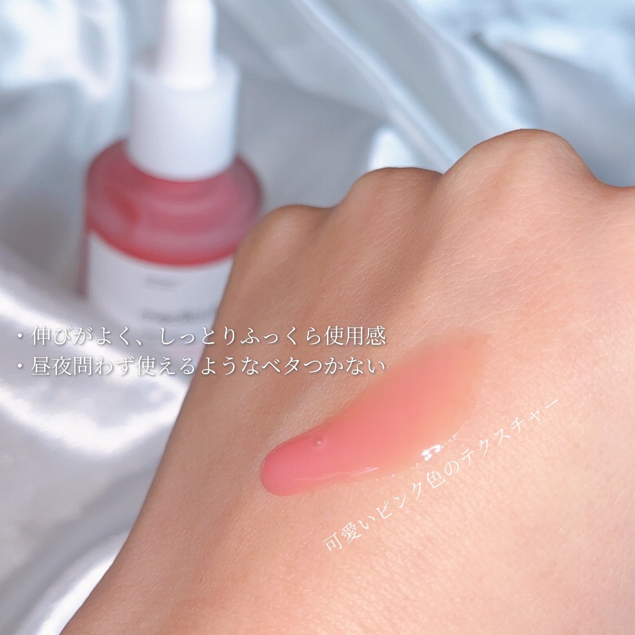 - 韓国の美容の専門機関からのアイデアを得て、サーモン由来成分PDRN(*1)と5種のペプチド(*1)成分を配合したピンク色の美容液です。 PDRN成分は肌のくすみ(*2)など、整肌ケアにおすすめの話題の美容液です。 5種のペプチド(*1)成分は、乾燥などの外部の刺激でゆらぎがちな肌のバリア機能をサポートして、肌を健やかに保ちます。 *1. 整肌・保湿成分 *2. 古い角質、汚れによるもの