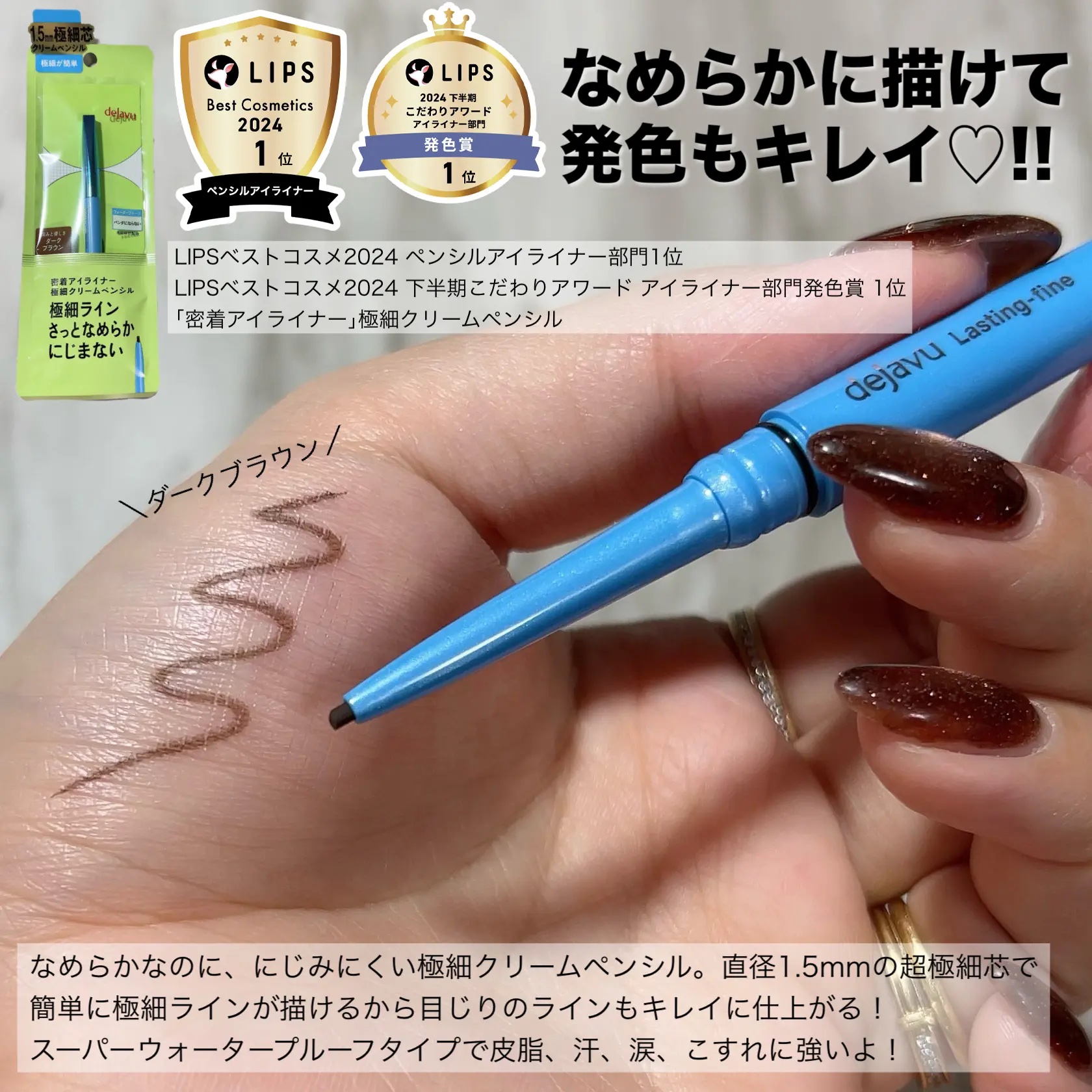 | プチプラなのに優秀!かなり極細で力入れなくてもスラスラかけるから良い♡ | 詳細を見る |