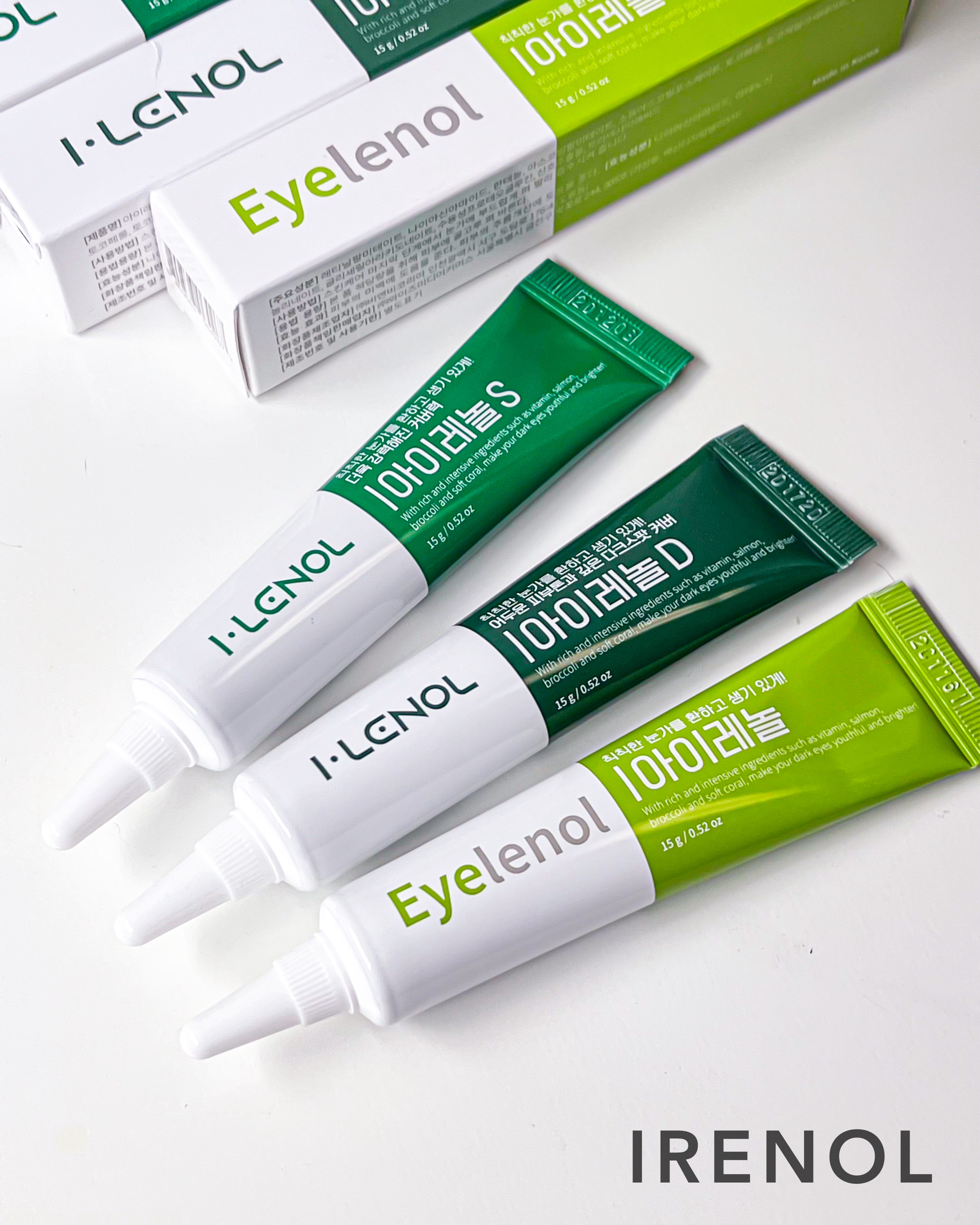 - <アイレノール クマクリーム> 水、シクロペンタシロキサン、グリセリン、ナイアシンアミド、ツボクサ葉エキス、サンゴエキス、パンテノール、イソヘキサデカン、ヒドロキシエチルウレア、ジメチコノール、アラントイン、グリチルリチン酸2K、プロパンジオール、カプリルヒドロキサム酸、香料、オリーブ果実油、酢酸トコフェロール、ホホバ種子油、オレイン酸ソルビタン、アルガニアスピノサ核油、アデノシン、エチルヘキシルグリセリン、プルラン、ヒアルロン酸Na、EDTA-2Na、トリデセス-6、DNA-Na、(アクリル酸グリセリル/アクリル酸)コポリマー、リノール酸グリセリル、ペンチレングリコール、リノレン酸グリセリル、アラキドン酸グリセリル、パルミチン酸レチノール、ラウリン酸K、ピーナッツ油、ヒアルロン酸クロスポリマーNa、トマト果実エキス、ブロッコリーエキス、ケール葉エキス、キャベツ葉エキス、チャ葉エキス、レモン果実エキス、アスパラガスエキス、フラガリアチロエンシス果実エキス、カキ葉エキス、トウガラシ果実エキス、水溶性プロテオグリカン、アスタキサンチン、ヒアルロン酸、トコフェロール、パルミチン酸アスコルビル、酸化チタン、酸化鉄、他 <アイレノール クマクリームS> 水、シクロペンタシロキサン、グリセリン、ナイアシンアミド、ツボクサ葉エキス、サンゴエキス、パンテノール、イソヘキサデカン、ヒドロキシエチルウレア、ジメチコノール、アラントイン、グリチルリチン酸2K、プロパンジオール、カプリルヒドロキサム酸、香料、オリーブ果実油、酢酸トコフェロール、ホホバ種子油、オレイン酸ソルビタン、アルガニアスピノサ核油、アデノシン、エチルヘキシルグリセリン、プルラン、ヒアルロン酸Na、EDTA-2Na、トリデセス-6、DNA-Na、(アクリル酸グリセリル/アクリル酸)コポリマー、リノール酸グリセリル、ペンチレングリコール、リノレン酸グリセリル、アラキドン酸グリセリル、パルミチン酸レチノール、ラウリン酸K、ピーナッツ油、ヒアルロン酸クロスポリマーNa、トマト果実エキス、ブロッコリーエキス、ケール葉エキス、キャベツ葉エキス、チャ葉エキス、レモン果実エキス、アスパラガスエキス、フラガリアチロエンシス果実エキス、カキ葉エキス、トウガラシ果実エキス、水溶性プロテオグリカン、アスタキサンチン、ヒアルロン酸、トコフェロール、パルミチン酸アスコルビル、酸化チタン、酸化鉄、他