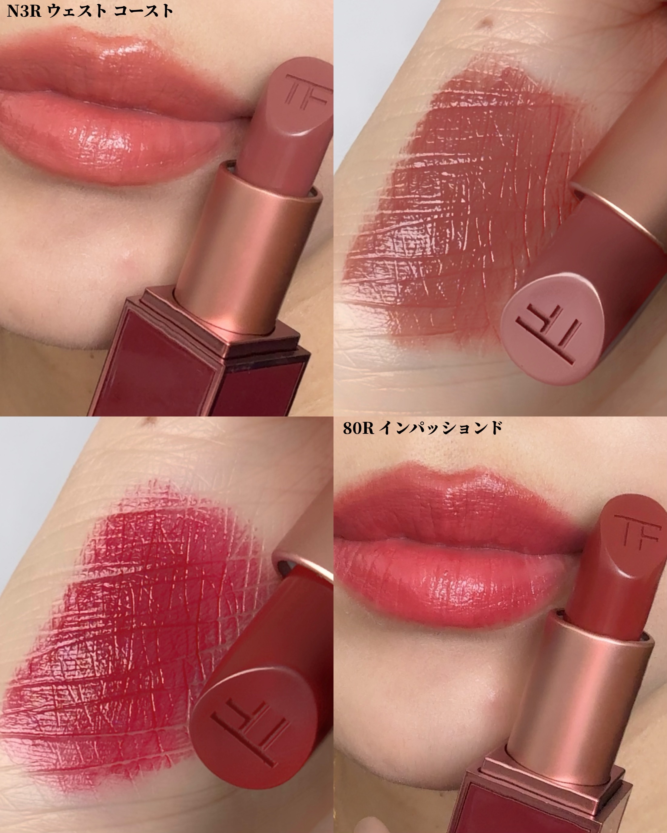 この薔薇のエンボスのせいか、ピントが合わない💦 そしてずっと見てると目が回るのは私だけ? 左下のカラーがとても可愛くて大好き系です。 色んなパレットにMIXして使いたい。 リップはインパッションド×リップオイルティント。 ウエストコースト、インパッションド、リップオイル(ストックあり)は手持ちがあるので購入に至らず。