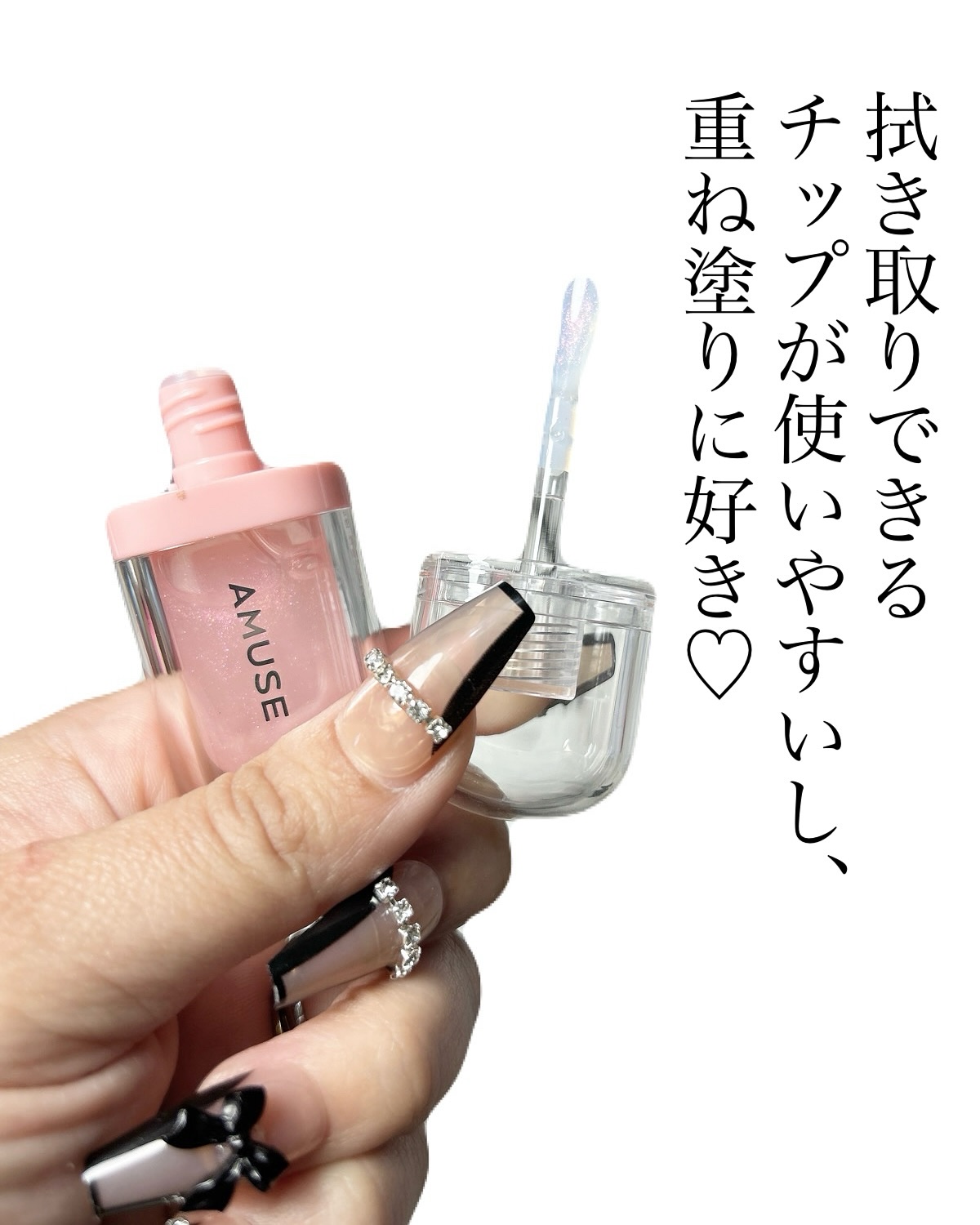 通称.飲み会リップで有名なだけあってクレンジングシートで拭いても色残りあり♡ 2025年1月24日発売もう発売しているから売り切れる前にゲットしてね♡ 私はティッシュオフしたあとに、透明なラメラメグロスカラークリスタル.ロー重ねるのにハマっているよ♡