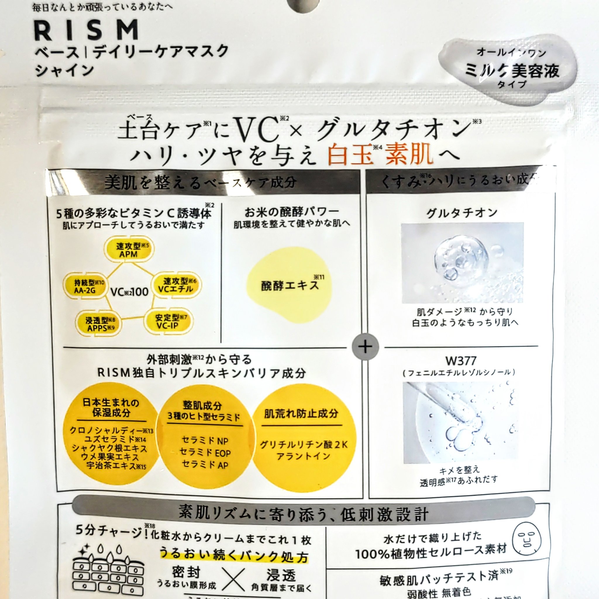 商品詳細情報RISM リズム べース デイリーケアマスク(シャイン)
