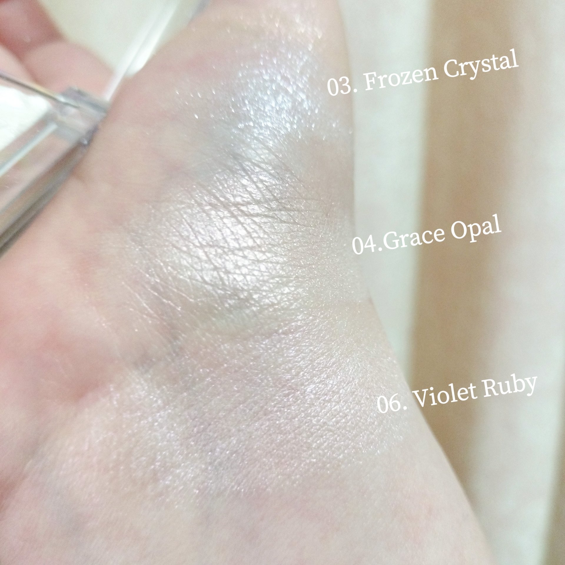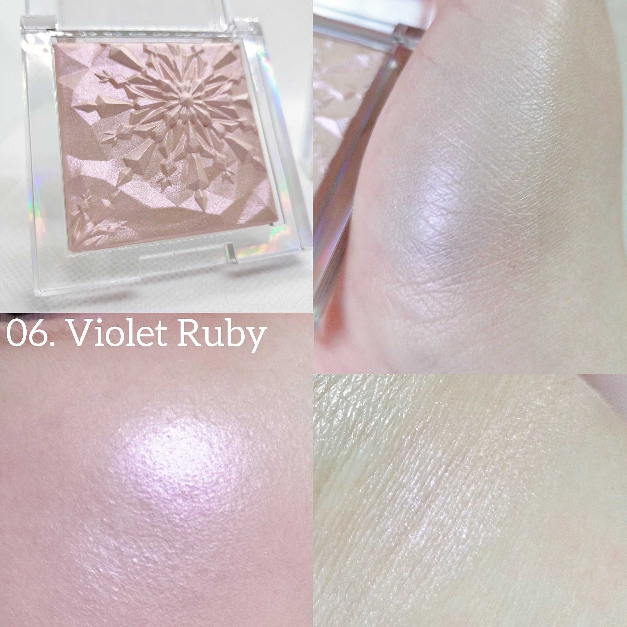 クリアな発色・繊細なラメ感はそのままに、カラバリが増えて雪の結晶デザインになって帰ってきたよ! しっとりベースでさまざまな角度に光を反射! ゴールドシアーは高級感のあるゴールドカラーで、バイオレットルビーは幻想的なライトパープルカラー🫶