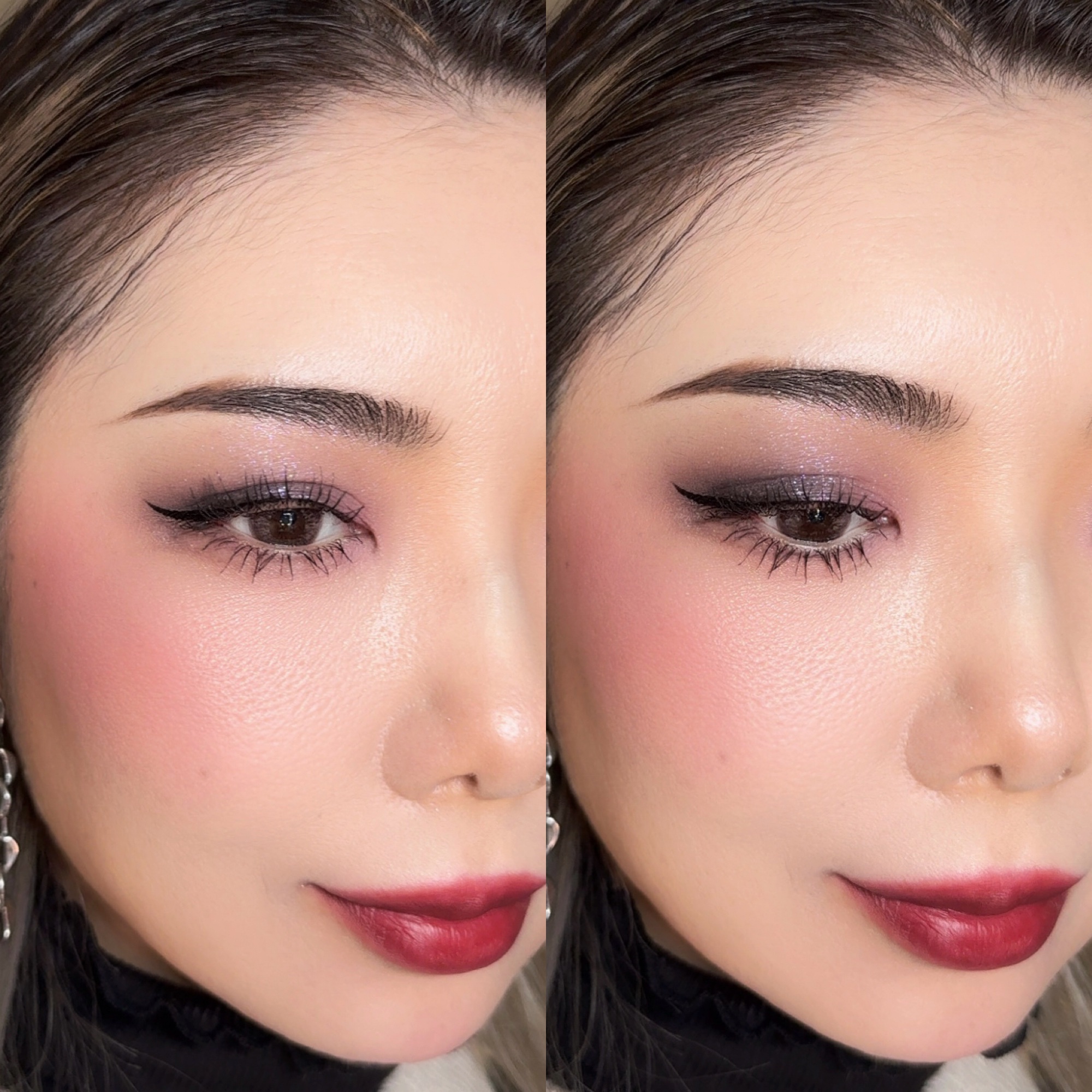 アイシーなピンクと水色のヘイローにしてみたよ🩷🩵やっぱりラメが可愛いパレット🥹✨✨ マットでベースを作ってから、同系色のラメを乗せたヘイローで、下まぶたは馴染みの良いようにベージュとピンクラメにシンプルに❣️ 雪の季節にやりたいメイクが出来たかな🤭☃❄